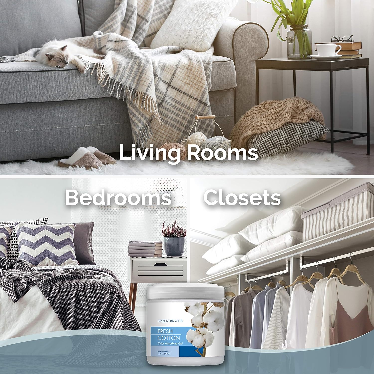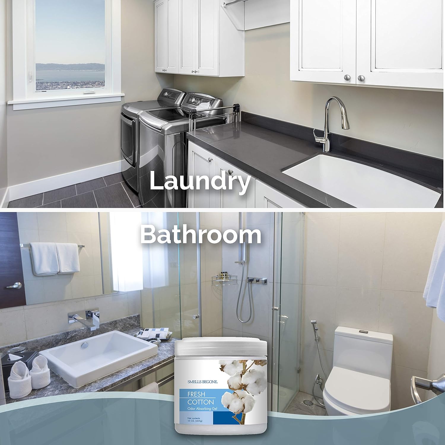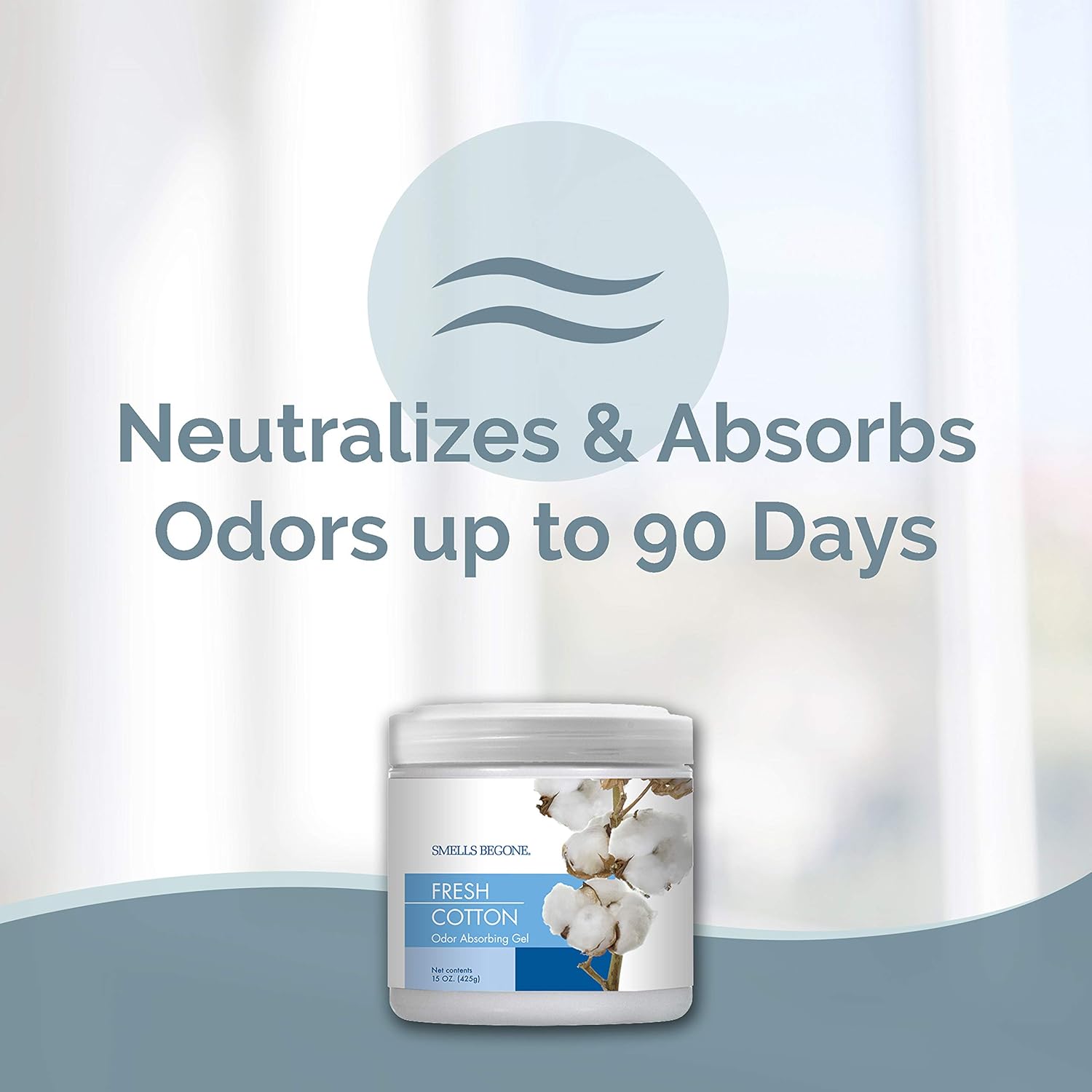 SMELLS BEGONE 15 oz Air Freshener Odor Absorber Gel - Absorbs Odor from Bathrooms, Cars, Pet Areas, Boats and RVs - Made with Essential Oils - Fresh Cotton Scent
