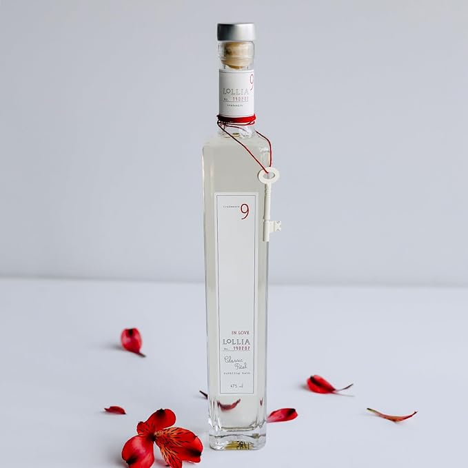 - A Striking Glass Bottle: This distinctive glass bottle of bubble bath is sweetly adorned with a symbolic key to the beloved’s heart, accented with delicate red cording, and sealed with a signature Lollia cork. Featured in Oprah’s Favorite Things