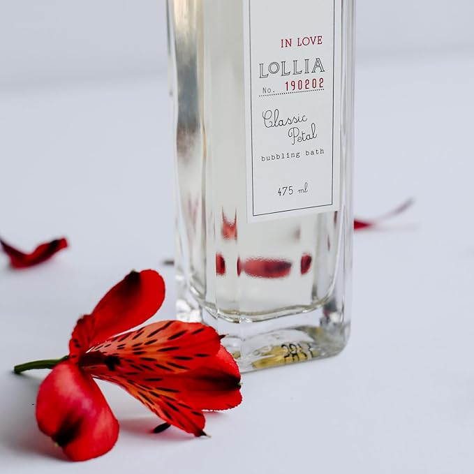 Lollia in Love Bubble Bath, 16 fl. oz., Classic Petal Scent, Gentle & Moisturizing Bubbling Liquid Soap for Women, Hydrating Ingredients, Luxury Beauty Care