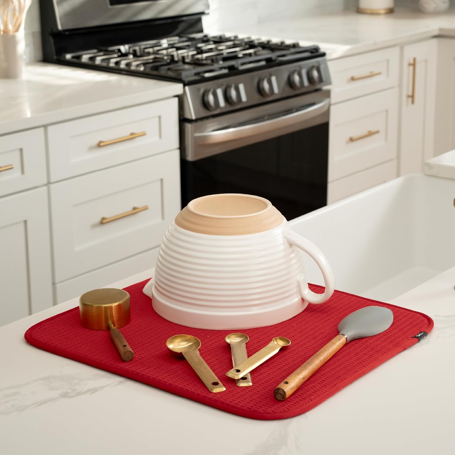 S&T INC. Dish Drying Mat, 16” x 18”, Absorbent Microfiber Kitchen Counter Mat, Dish Drying Pad for Dishes, Utensils, Pots and Pans, Large, Red