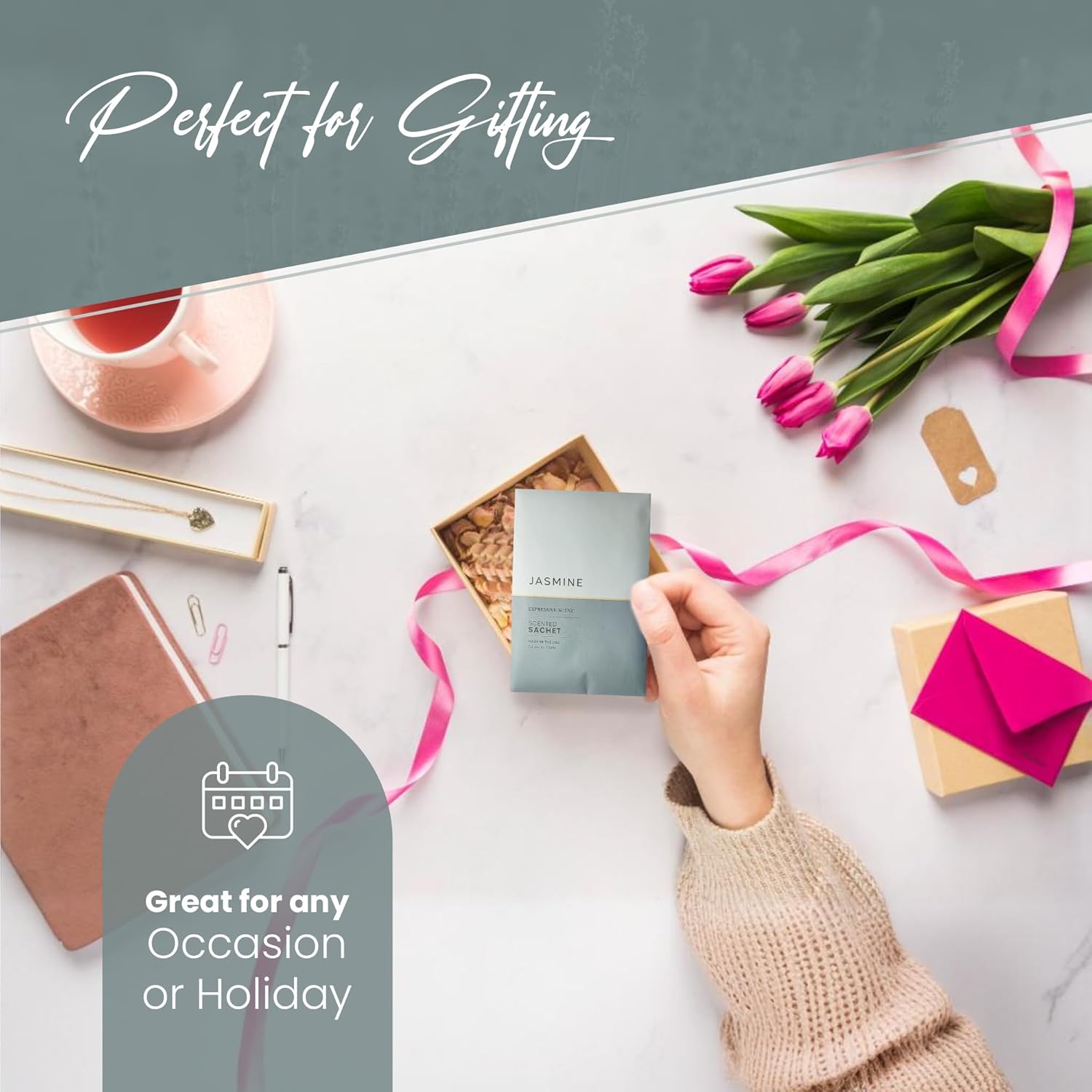 Expressive Scented Sachet Pouches – Perfect Jasmine Air Freshener & Closet Deodorizer for Drawers, Closets, Cars and Bathrooms – Long-Lasting Fresh Scent Sachets (6- Pack)