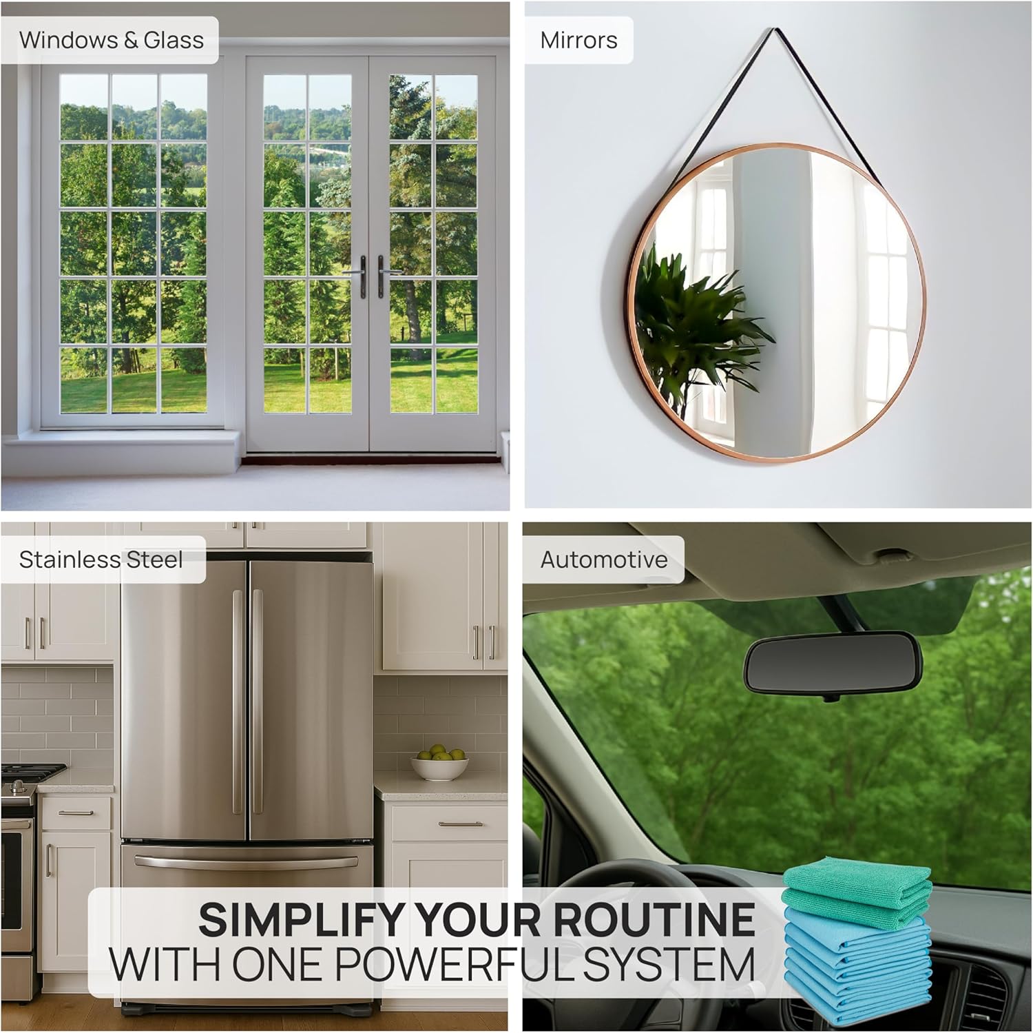 • 2-Step Streak-Free Glass Cleaner System - Achieve a perfect finish with the Claro 2-cloth process: Use the damp green cloth to remove grime, then follow up with the dry blue microfiber cleaning cloth.