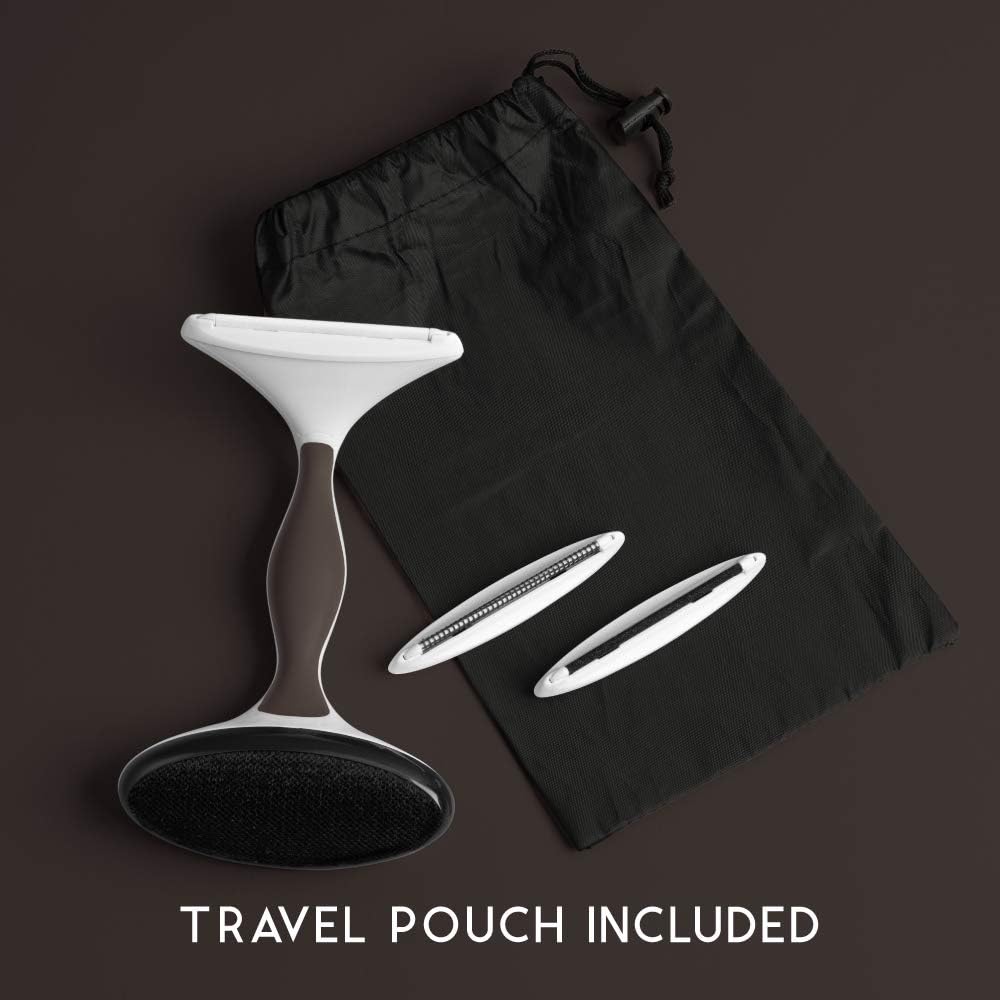 - ERGONOMIC PATENTED DESIGN: The ergonomic handle has a soft moulded grip & the quick release button allows you to easily switch between lint shaver edges. Comfortable to use for bigger depilling jobs such as cushions, sofas, linens, and blankets. Kit includes: Ergonomic handle with integrated lint brush, 3 fabric safe edges, and drawstring travel pouch.