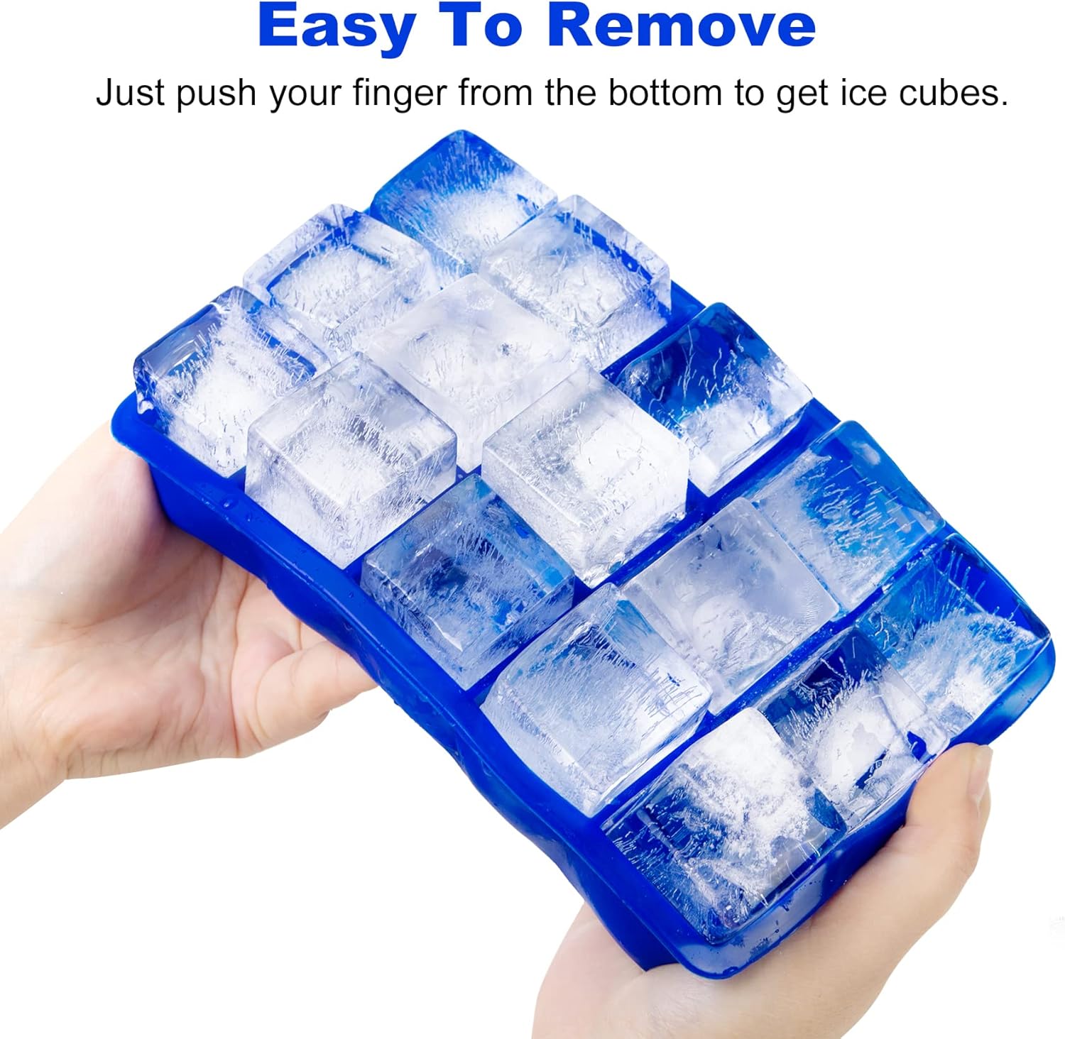 - Ice Trays Set: This is a set of 2 pack silicone ice cube trays for freezer, 15 cavities each, allowing you to make square ice cubes(1.25 inches) , and the ice cube tray are moderate in size and can cool the drink quickly.