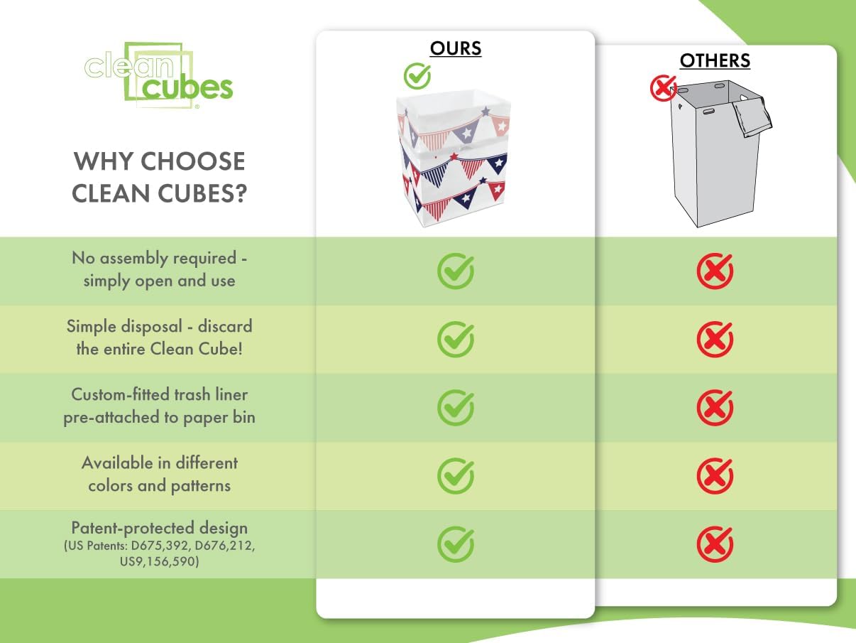 • ✅ 【EFFORTLESS CLEANUP & DISPOSAL】Simply unfold, use, and toss — keep your event clean and mess-free without extra effort. Clean Cubes are disposable recycling bins and trash cans with a patent-protected design and custom-fitted trash liner in each bin.