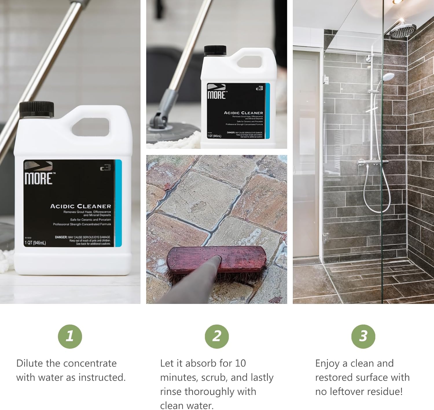 MORE Grout Cleaner for Tile Floors - Acidic Grout Cleaning Solution - Removes Cement-Based Grout Haze, Efflorescence and Mineral Deposits - Quart 32oz