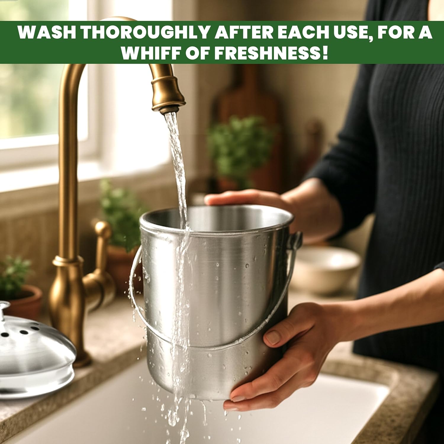 - This compost bin having capacity of 1.3 gallon is manufactured with stainless steel for optimal longevity and durability that won't scratch, crack or chip