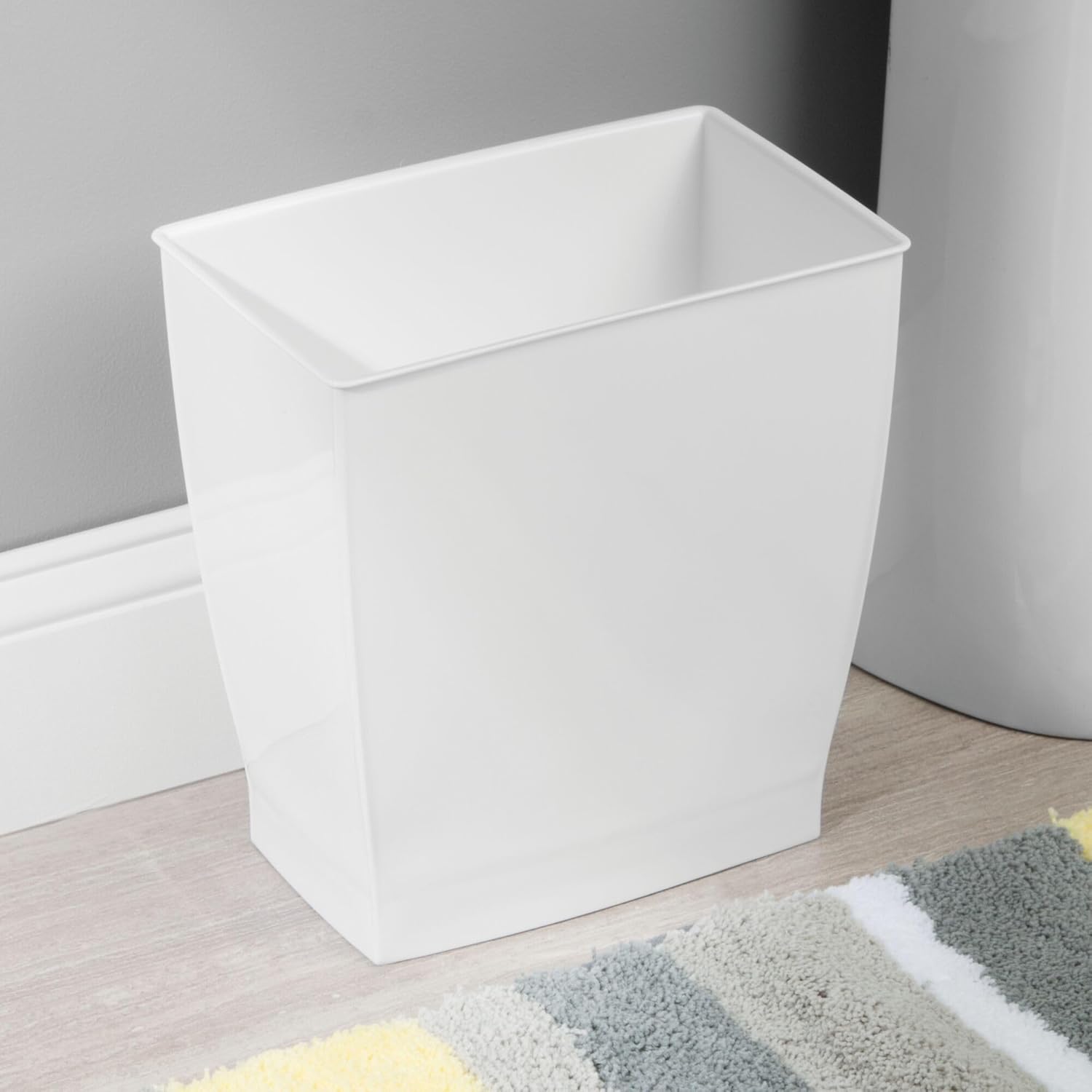 iDesign,Plastic Spa Rectangular Trash, Waste Basket Garbage Can for Bathroom, Bedroom, Home Office, Dorm, College, 2.5 Gallon, White