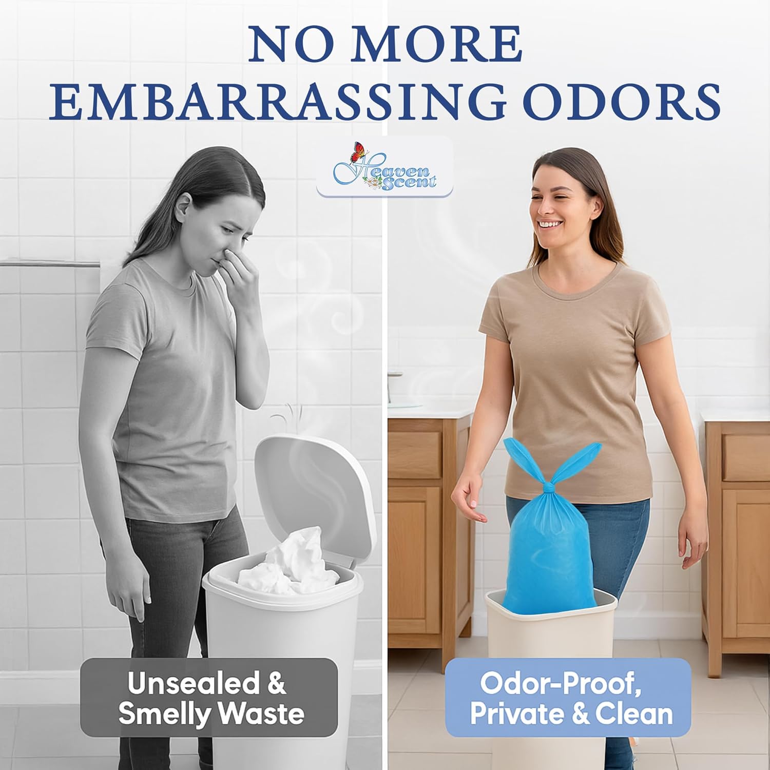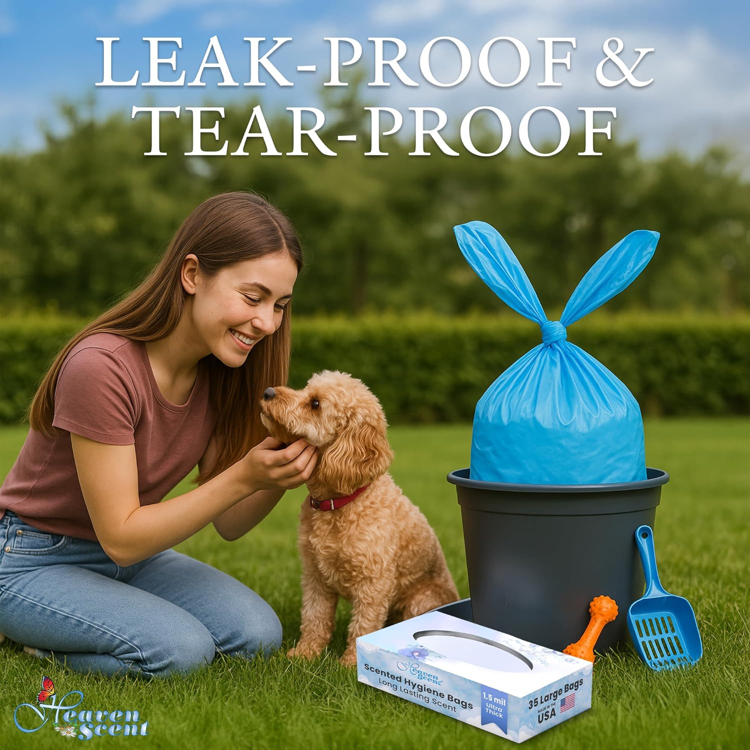 - LEAK-PROOF AND NO TEARING, Heaven Scent Hygiene scented trash bags are 1.5 mil thick unlike other brands. Money back guarantee, no questions asked. We stand by our product's quality