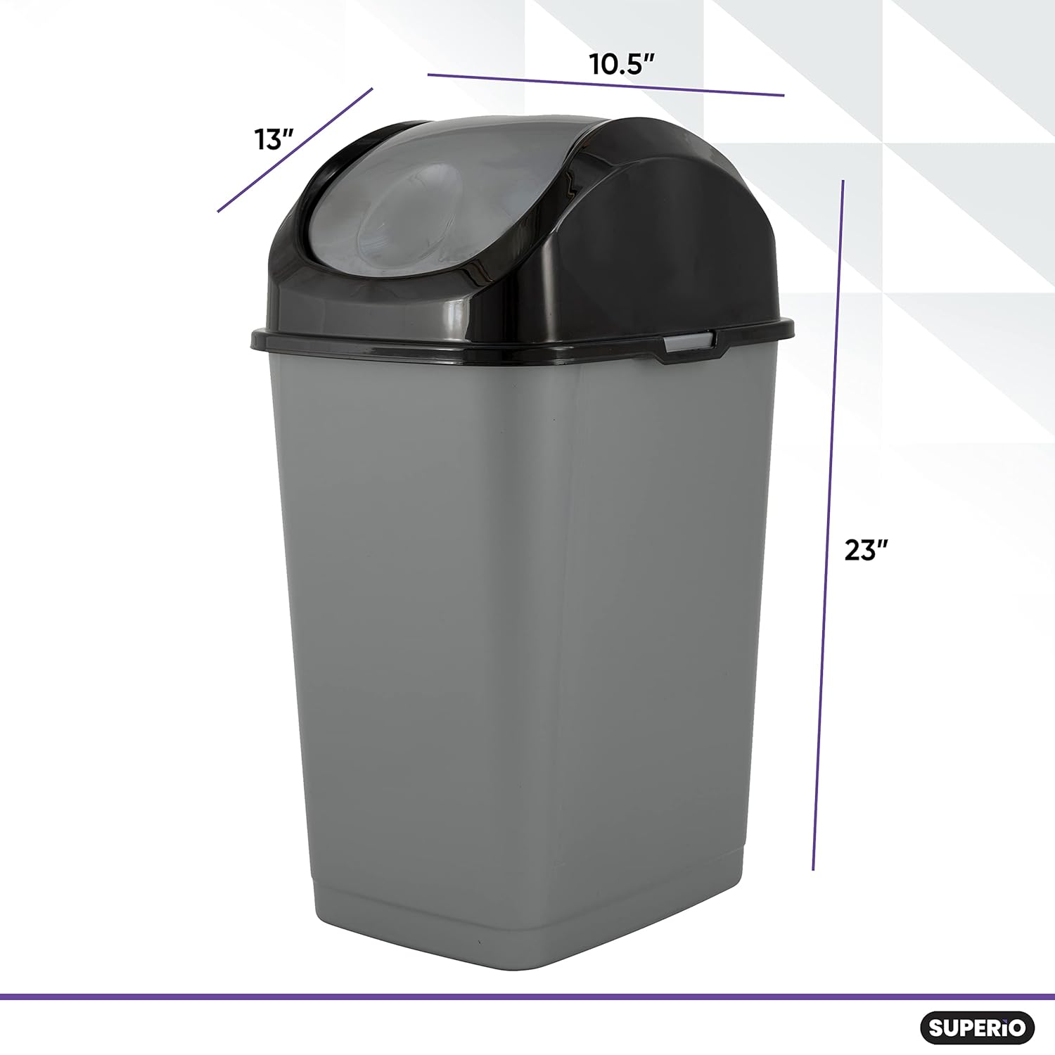 Superio Trash Can with Swing Top Lid 9 Gallon, Grey and Black Slim Waste Bin Durable Plastic 37 Qt Fit Small Spaces, Office, Bathroom, Under