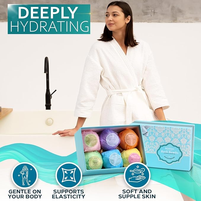- DEEP RELAXATION: Bellisso’s set of six bath bombs for women are the self care products you’ve been looking for; Sink into a deeply relaxing state with our bath products and let the effervescent fizz of these individually wrapped bath bombs melt your stress away