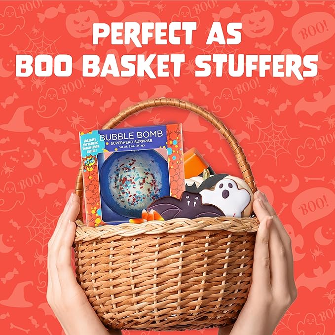 - [Hidden Superhero Toys Inside] Each handmade bubble bomb contains a surprise bath toy! These bath bombs with toys inside are designed specifically to make bath time fun for little boys and girls. They will also be ideal as an Halloween Gift for Kids.