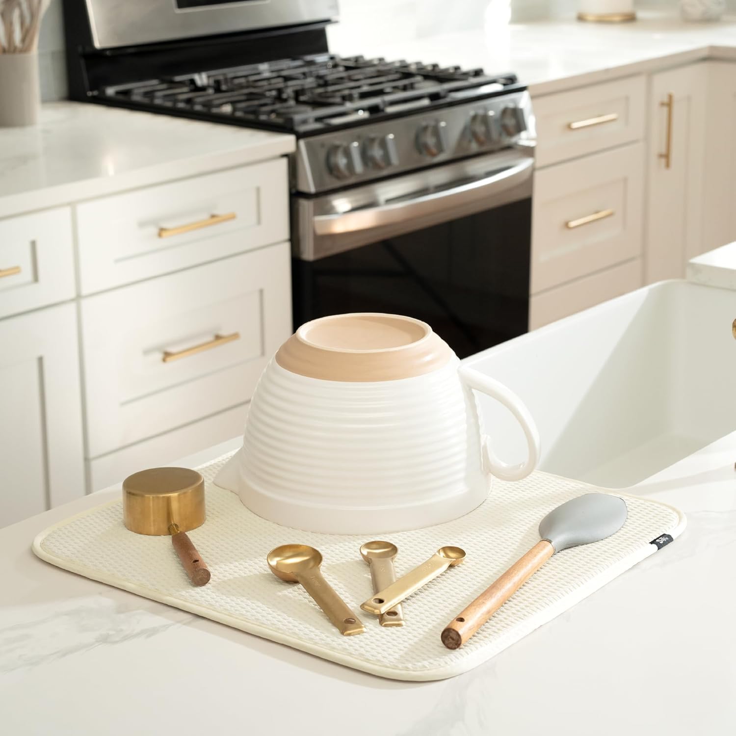 S&T INC. Dish Drying Mat, 16” x 18”, Absorbent Microfiber Kitchen Counter Mat, Drying Pad for Dishes, Utensils, Pots and Pans, Large, Diamond Texture, Cream
