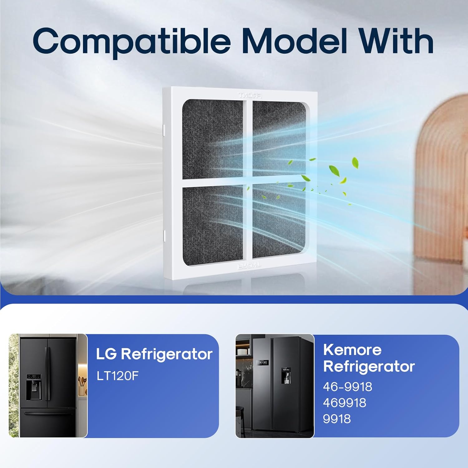 - Fit Models - ICEPURE AF004 Refrigerator Air Filter compatible with LG LT120F Kenmore 46-9918. Easy installation & Replace every 6 months, depending on the operating conditions. Filter Dimensions: 3.2283" x 3.2283".