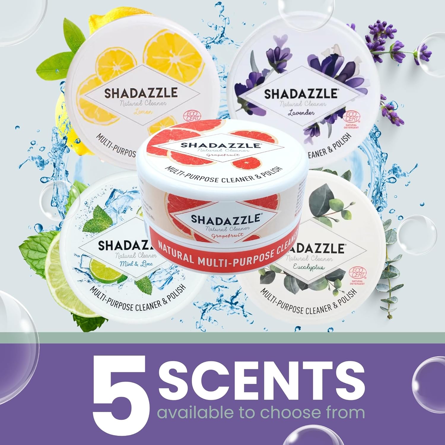 - NATURAL ALL PURPOSE CLEANER : Shadazzle is a multi purpose cleaner that works on any washable surface. It is made with natural ingredients only : clay, vegetal oil, vegetal glycerin, lavender fragrance. No harmful chemicals or phosphates !