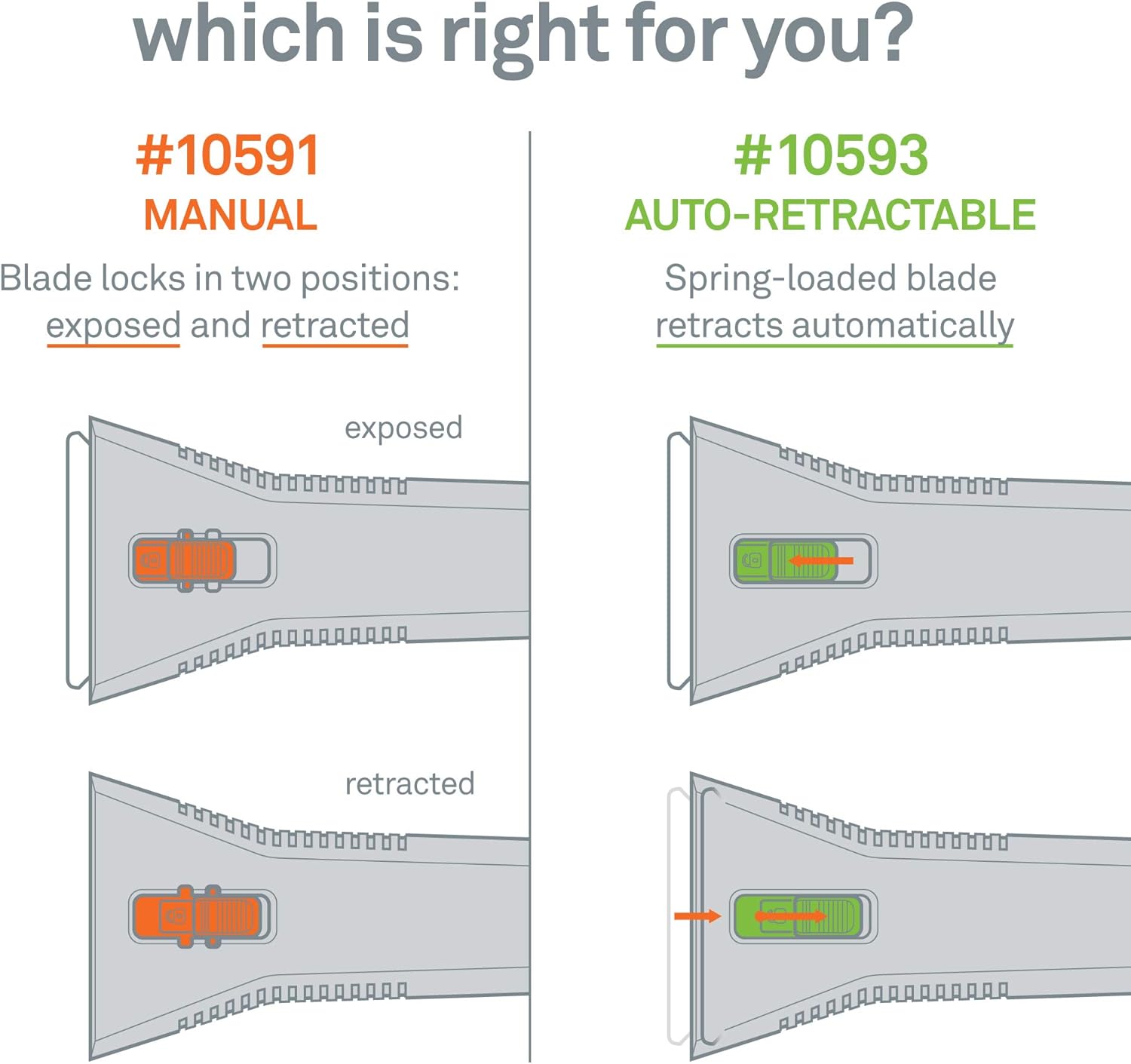 10593-CS Auto-Retracting, Utility Scraper, Locking Ceramic Blade, Rust Free, Finger Friendly, Soft-Touch Comfort Grips Reduce Strain, 12 Pack
