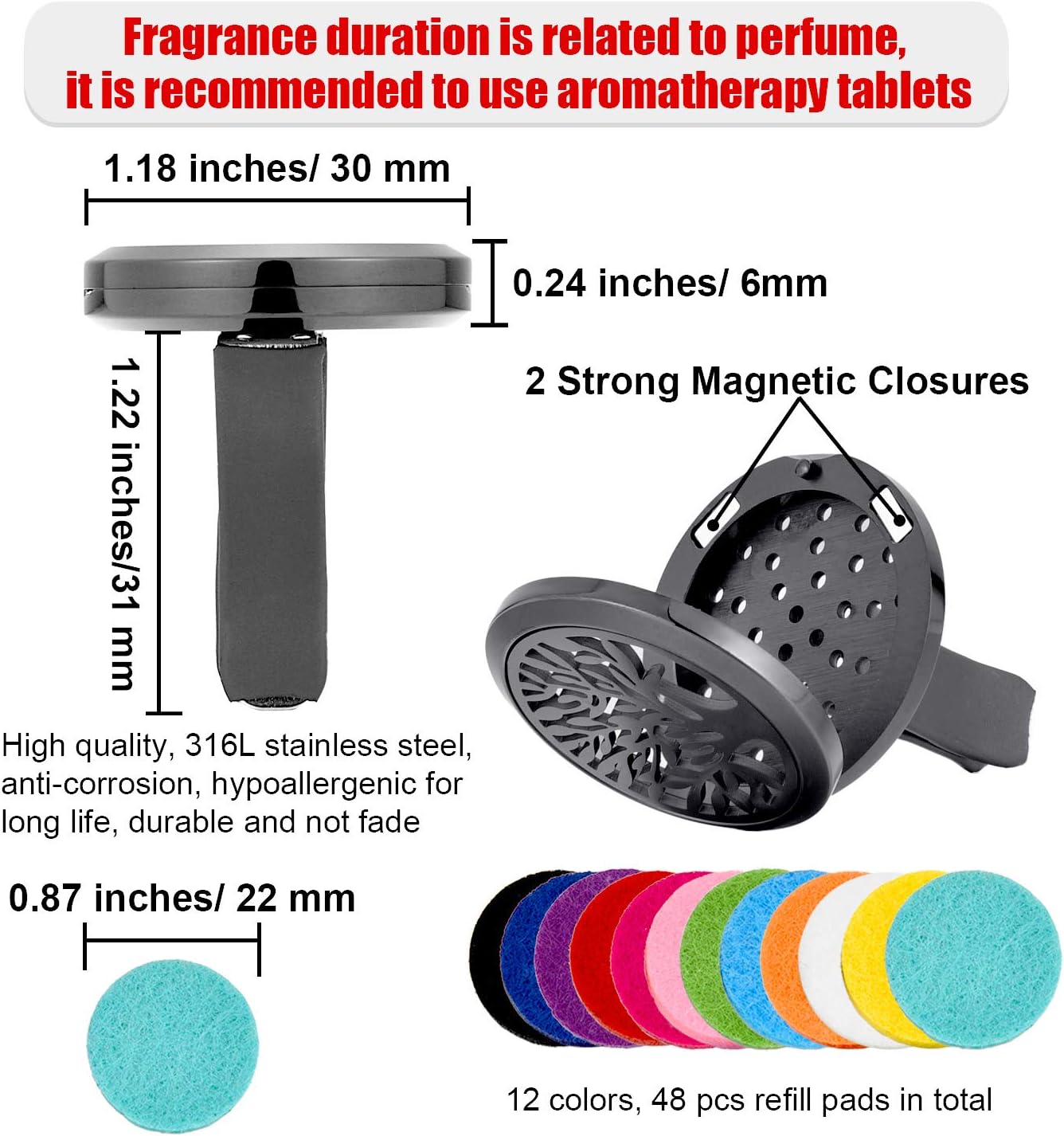- Package includes: 2 different styles of tree patterns car diffuser vent clips and 48 pieces of replacement felt pads (12 colors, each color 4 pieces)