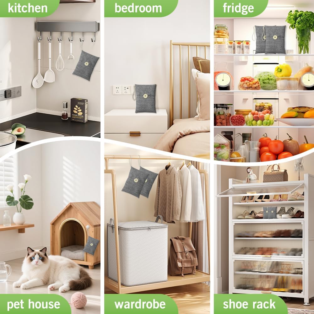 - 【RECYCLABLE WITHOUT WASTE】These charcoal bags are reusable for 2 years! When this charcoal bag is saturated, in order to rejuvenate the bamboo charcoal bag, you need to place the charcoal bag outside in the sun once a month for at least two hours. You can reuse these charcoal bags without waste.