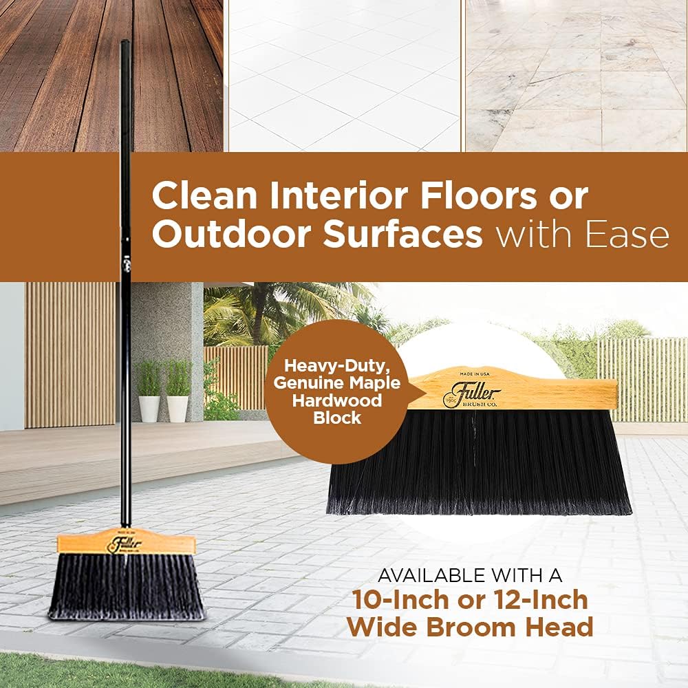 - Durable Handle: Available with a 10-inch and 12-inch wide block to accommodate your needs, each broom comes complete with Fuller’s 2-Piece Black Steel Handle for simple cleaning – making it easy to reach unattainable areas without bending or stooping.