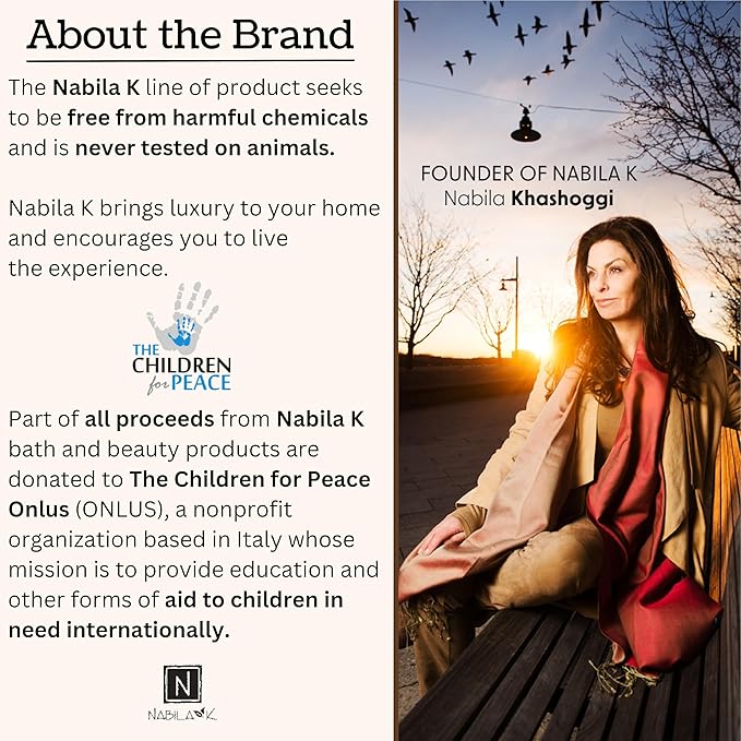 - Ethically Sourced and Cruelty-Free: Our bath salts are ethically sourced and cruelty-free, made in the USA. Available in both 2 oz and 8 oz jars. A portion of all proceeds from Nabila K bath and beauty products is donated to The Children for Peace Onlus (ONLUS), a nonprofit organization based in Italy dedicated to providing education and aid to children in Third World countries.