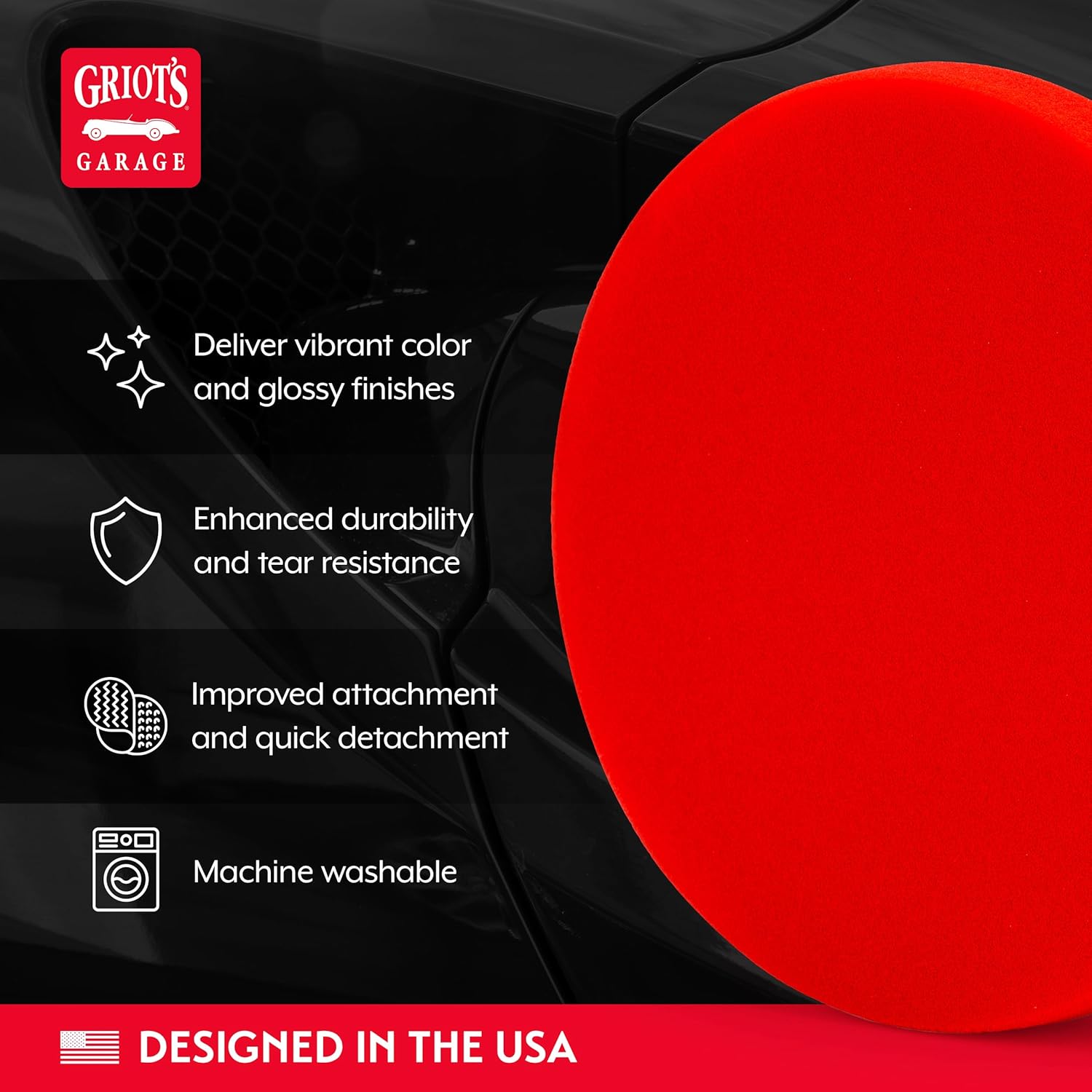 Griot's Garage 6.5” Red Foam Waxing Pads for Car Detailing, Polishing and Buffing Pads for Use with Waxes and Sealants, 10624, Set of 2