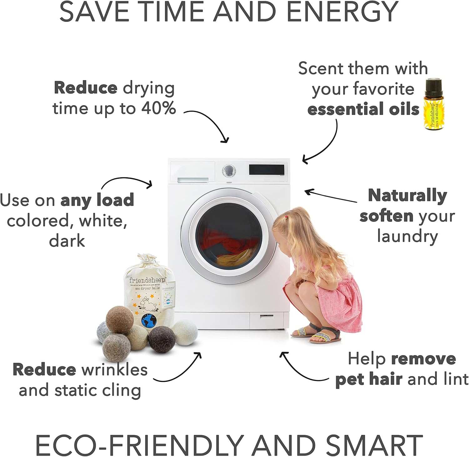 - ECO-FRIENDLY AND REUSABLE FOR 1000+ LOADS, replaces dryer sheets & liquid fabric softeners. Makes your laundry soft and fluffy, reduces wrinkles and static cling, and shortens drying time by up to 40% depending on load size. Your sheets and towels are fluffier, less balling and twisting. Makes you SAVE TIME, ENERGY, AND MONEY! All by keeping safe and healthy you, your family and the environment.