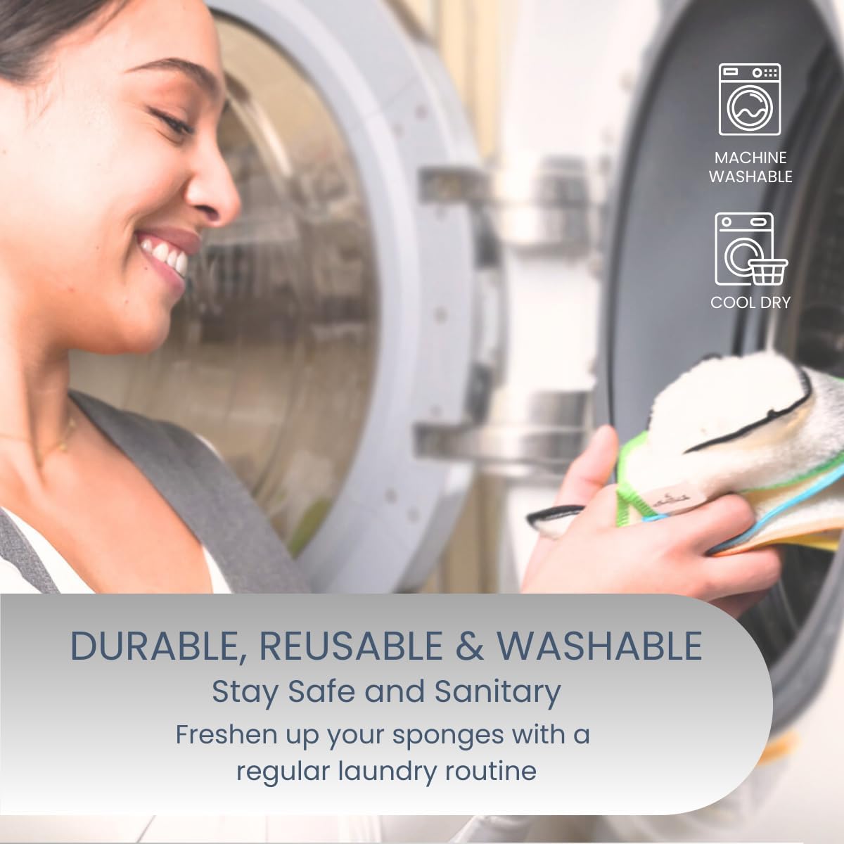 • WASHABLE & BUILT FOR LONG-LASTING USE: Whiffkitch Bamboo Fiber Kitchen Sponges are designed with durability in mind, featuring strong stitching and a foam core that maintains its shape after repeated washes. As a washable sponge and part of a durable kitchen sponges pack, they’re a smart choice for households aiming to minimize waste and cut down on frequent replacements.