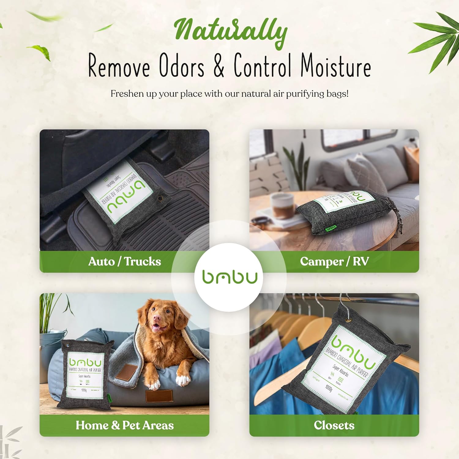 1000g Large Bamboo Charcoal Air Purifier Bag - Car Deodorizer Freshener - Remove Odor and Control Moisture in Your RV, Camper, SUV, Truck, Closet, Mobile Home, Storage - Non fragrant 1kg