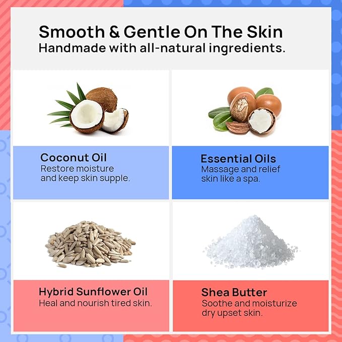 - Soothing with natural hydrators: Unlike other bath bombs that are made with drying chemicals, ours come with with shea butter, coconut oil, and sunflower seed oil—incredible moisturizers and inflammation remedies, all sourced from nature! Your skin will feel soft and soothed after just one use.