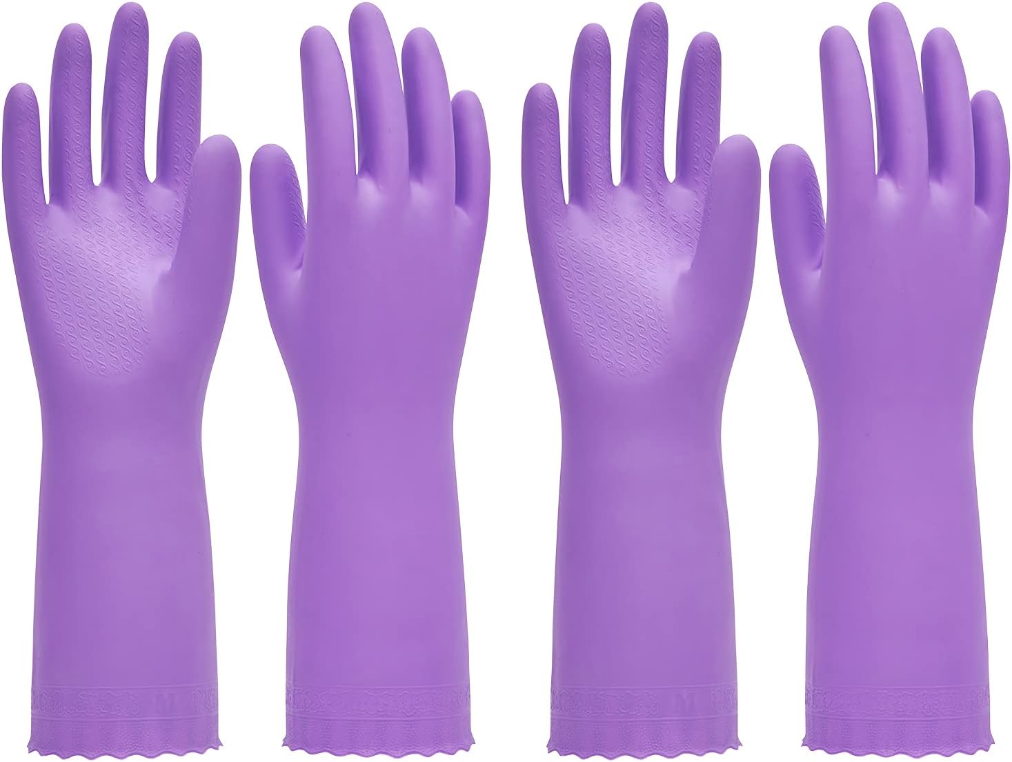 PACIFIC PPE 2 Pairs Reusable Dishwashing Cleaning Gloves with Latex Free, Cotton Lining, Kitchen Gloves, Purple, Small