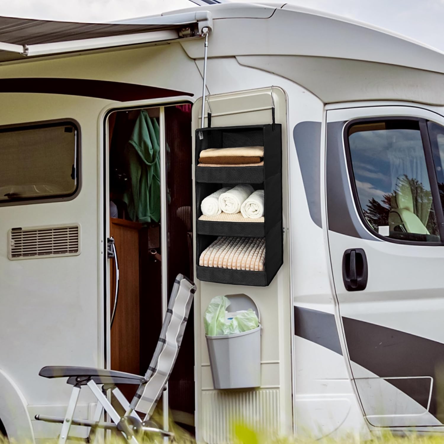 • Foldable and Portable - No assembly required, the storage closet organizer can be collapsed flat for space-saving when not in use or taken to travel. Perfect for RV accessories, camper storage.