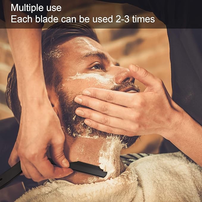 - Barber straight razor set: you will receive 1 piece black straight edge shaving razor, 1 piece neck duster and 40 pieces double edge blades, each blade is individually wrapped with wax paper, will serve you for a long time