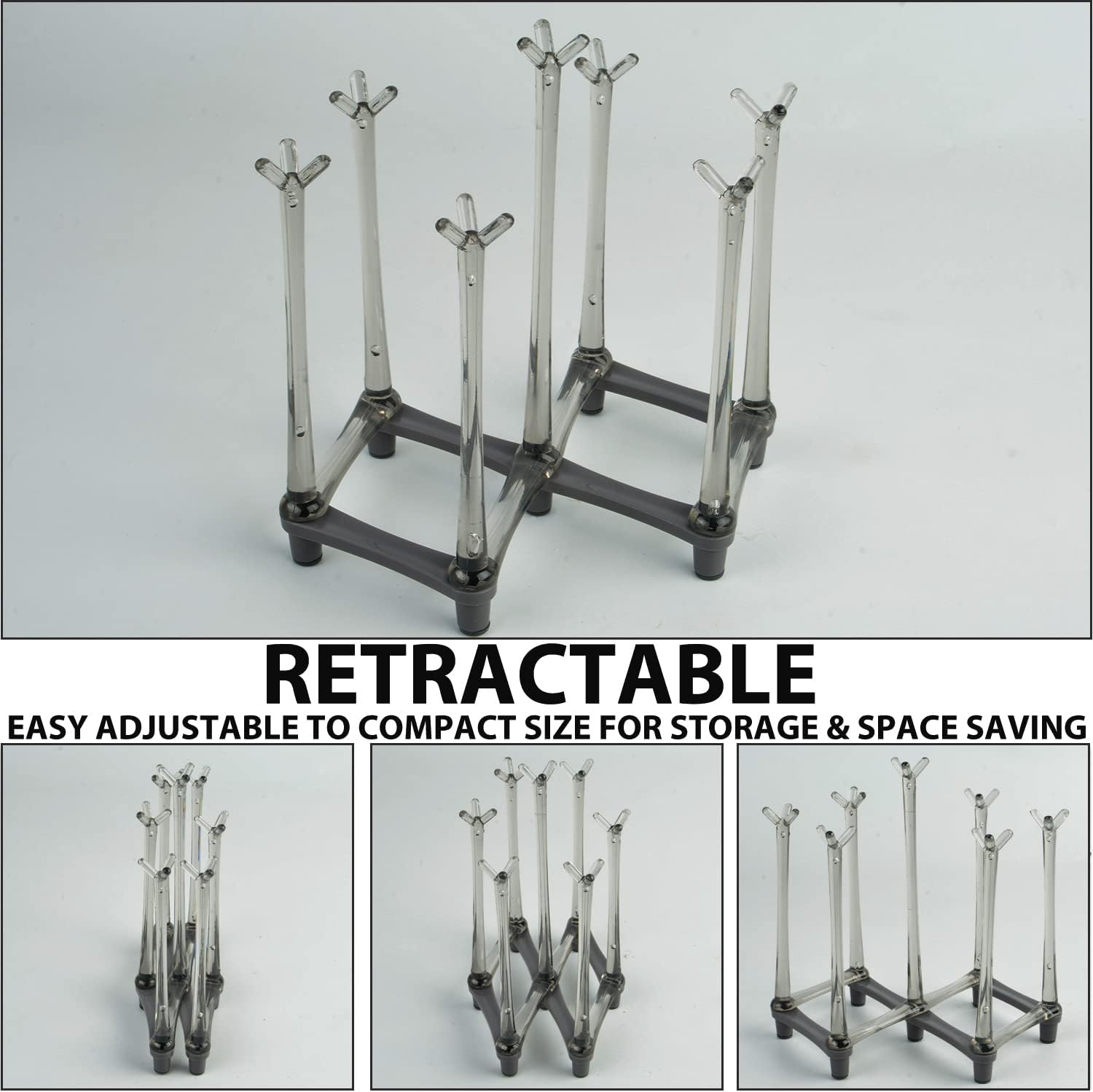 - Unique Retractable Design: The foldable cup drying rack can be easily adjusted to fit cups, mugs or bottles of different sizes, to meet different demands of using. When fully folded, the size is only about 19.5 x 17 x 5 cm (7.68 x 6.69 x 1.97 inch), very easy to store when not in use.