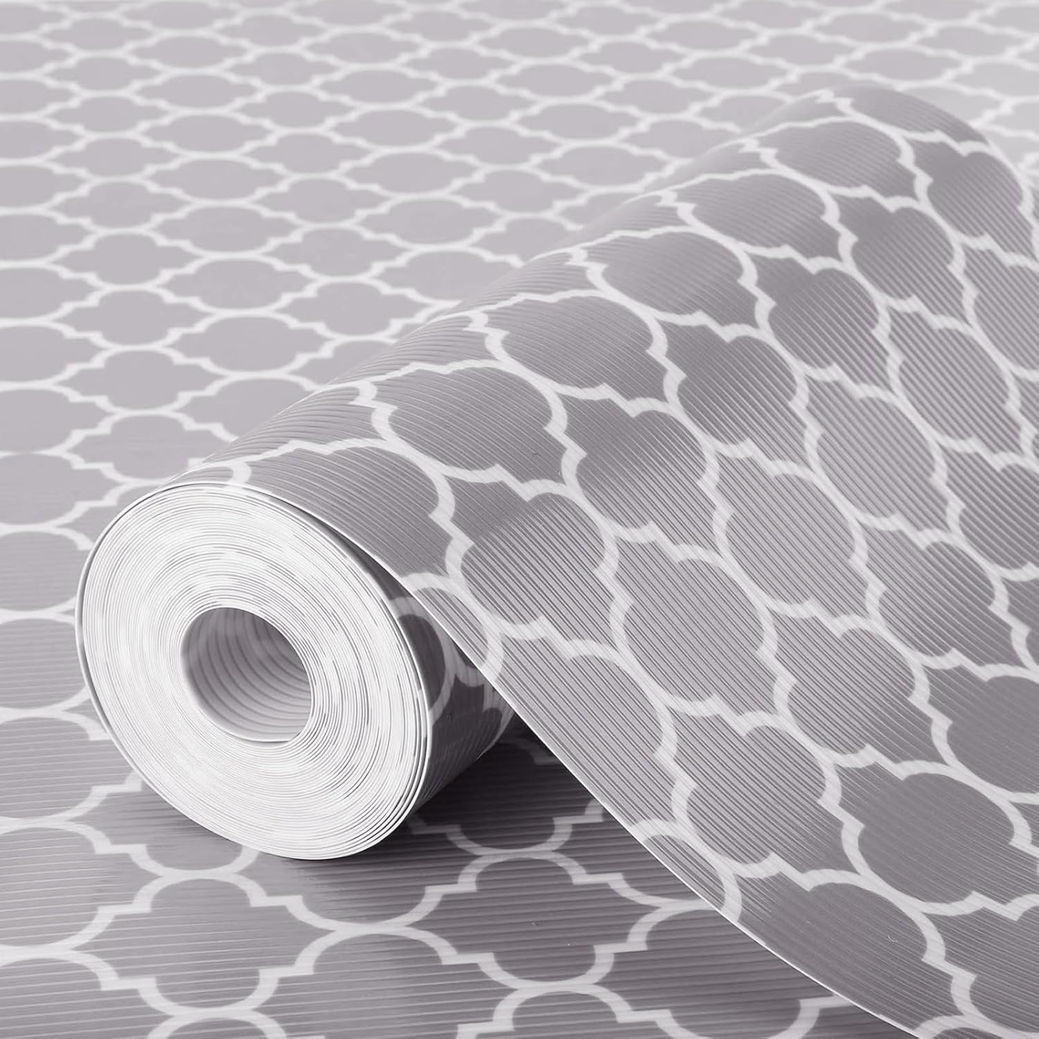 Glotoch Shelf Liner 12" x 30 ft. - Non Adhesive Refrigerator, Kitchen, Drawer Liners, Waterproof and Durable Fridge Table Place Mats for Cupboard, Cabinet, Drawer Liner, Quatrefoil Gray