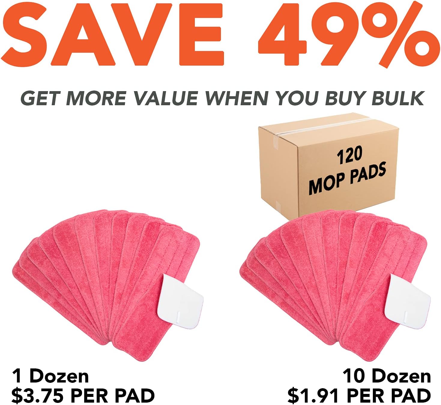 - ALL SIZE CLEANING SUPPLIES: Our commercial mop pad refills are designed to work with all-size velcro-backed flat mop frames, including compatible with Bona and Rubbermaid Mop Heads. Mop pads come in 13", 18" and 24" and are effective in cleaning any floor surface - vinyl, hardwood, laminate, and tile.