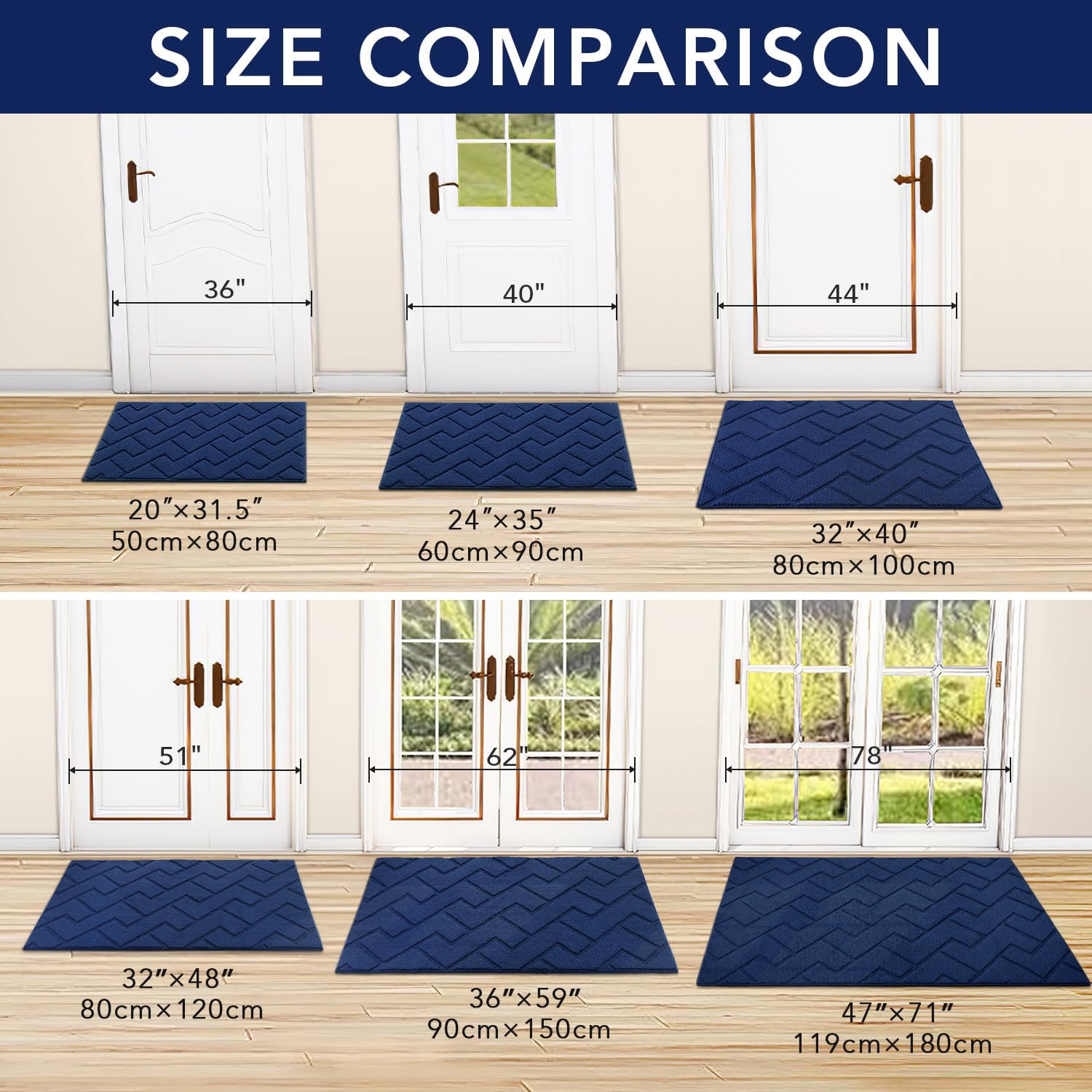 hicorfe Indoor Doormat,Front Back Door Mat TPR Backing Non Slip Mats 20"x31.5" Absorbent Resist Dirt Entrance Doormat Inside Floor for Entryway Washable Low-Profile(Navy Blue)