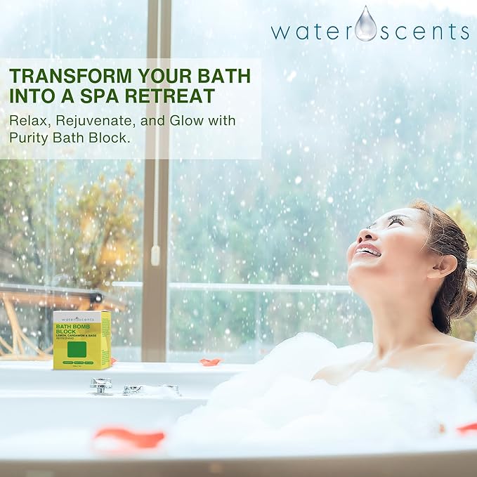 Water Scents Purity Bath Bomb Block | Vegan, Natural & Cruelty-Free | Aromatherapy Bath Soak with Lemon, Cardamom & Clary Sage | Refreshing & Moisturizing, Handmade in USA – 3.5 oz (1-Pack)