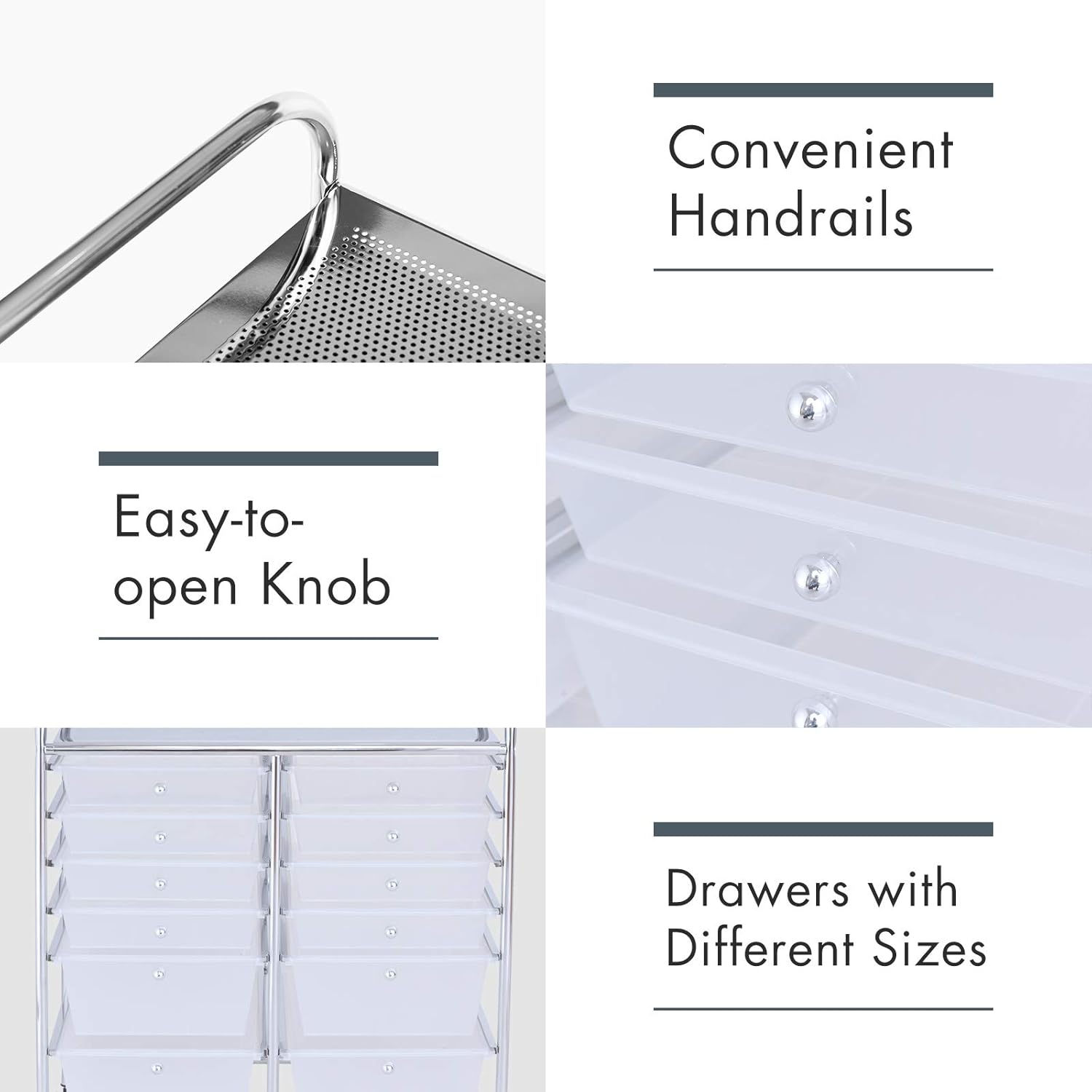 - 12 Drawers with Enough Space: Comes with 12 drawers, the rolling cart will provide ample space for you to store stuff in different categories. The 4 drawers are big and the other 8 are small. It is easy to find the thing you need if you keep them in order. With smooth slide, the drawers are easy to open or close.
