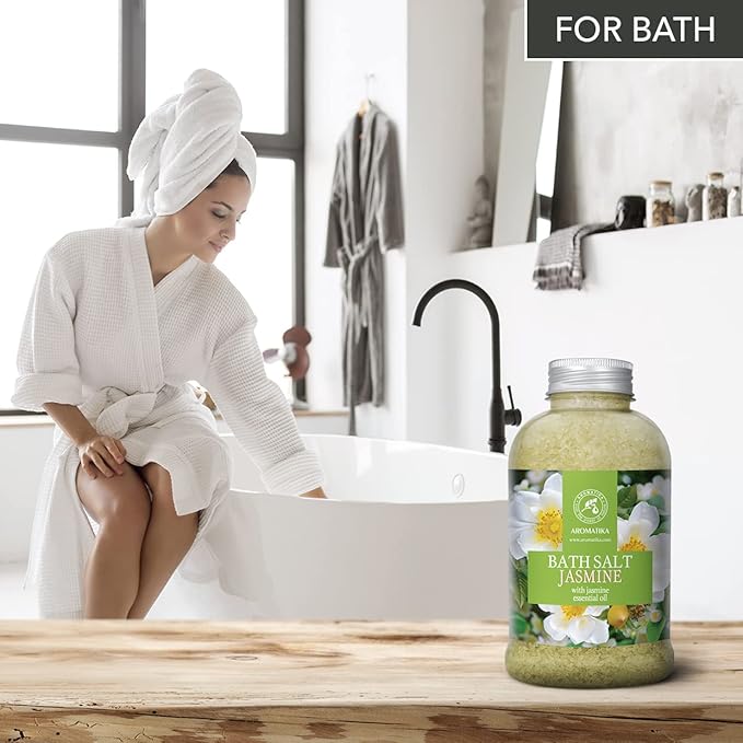 - The use of pure Jasmine essential oil in sea salt ensures highly effective aromatherapy. The energizing flower scent inspires relaxation and promotes rest in all senses