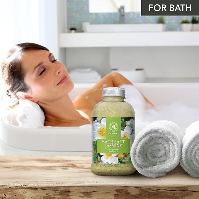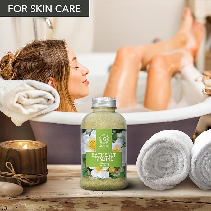 Bath Sea Salt Jasmine 21.16 Oz - Bath Salts with Jasmine Essential Oil for Bath Soak - Relaxing Bath - Body Care - Muscle Relaxation - Good Sleep - Aromatherapy Bath Salts - Flower Bath Salt
