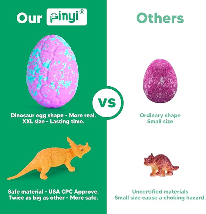 - 【Bath Bombs with Surprise Inside】Each bath bombs for kids contains a different and XXL dinosaur toy inside. Our dinosaur toys are made of safe material and also passed U.S. Toy Safety Testing for Kids Products. These toys do not cause choking hazard and can also be used for collection, make children recognize ancient creatures and cultivate children’s imagination. So this bath bombs gift set will bring experience for boys and girls the best surprises when bathing time.