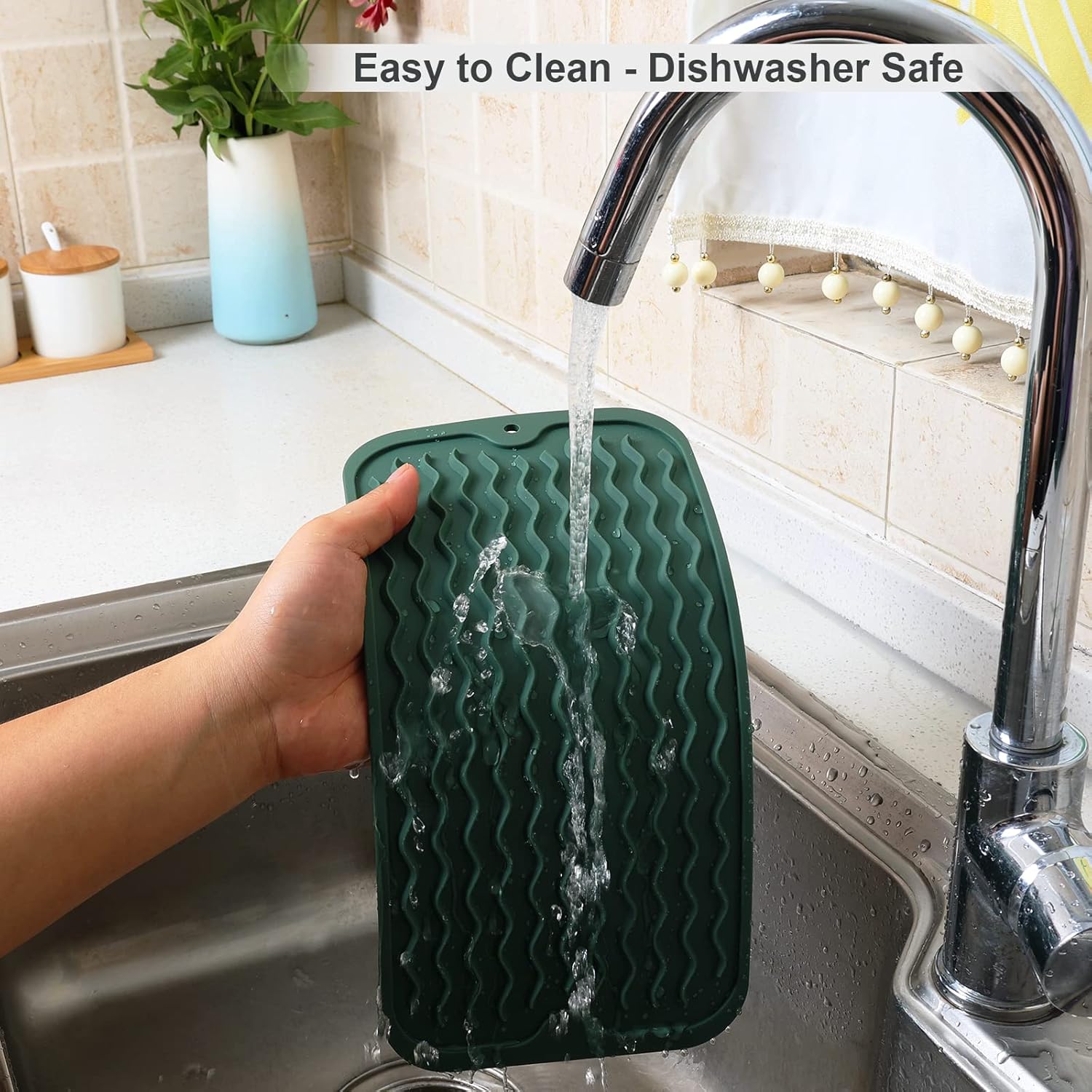 ZLR Silicone Dish Drying Mat for Kitchen Counter, Eco-Friendly Fast Dry Dish Mat, Easy Clean Multi Usage Drying Matt, Heat Resistant Trivet, 6" x 12" Extra Small, Dark Green