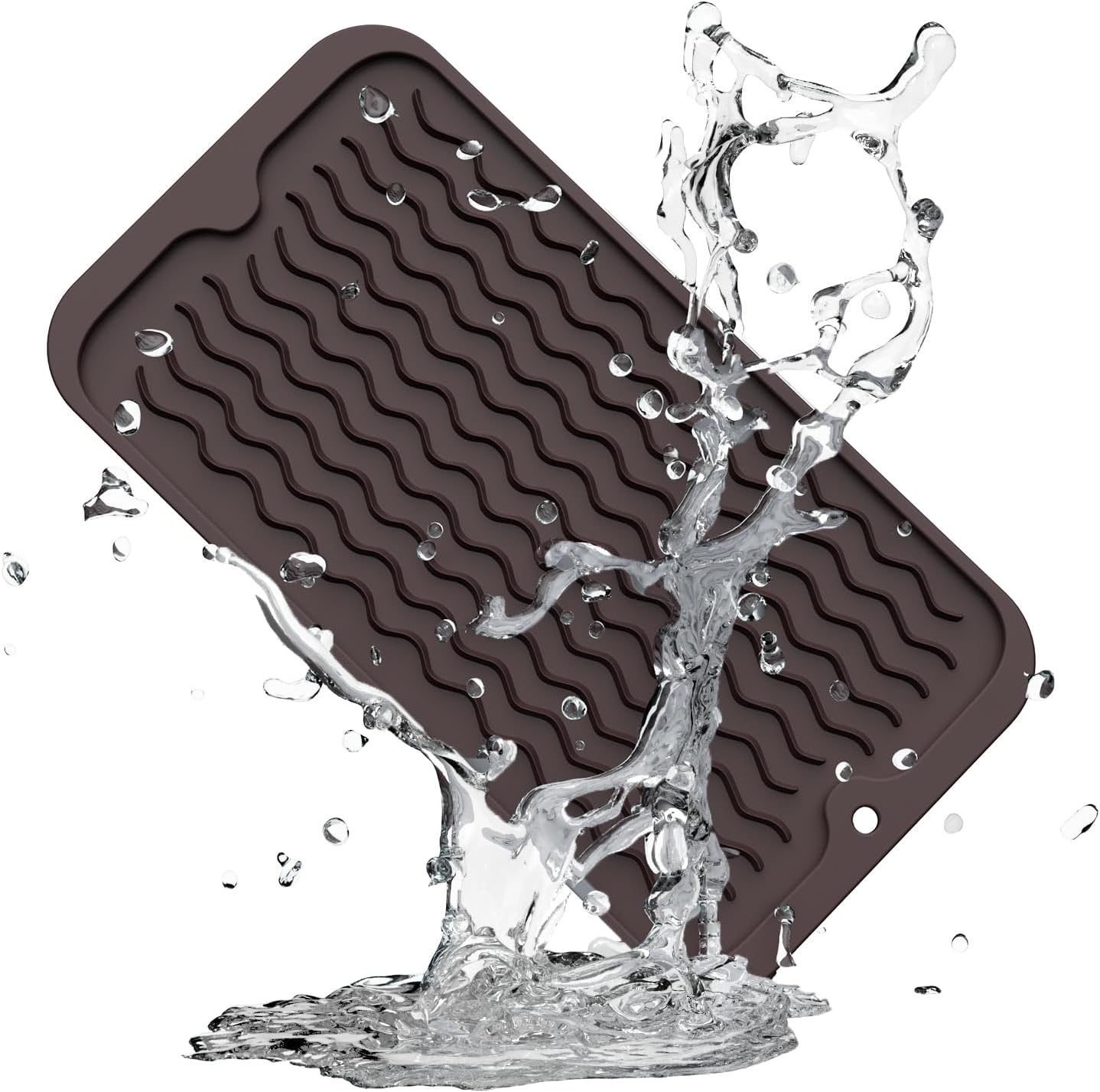 ZLR Silicone Dish Drying Mat for Kitchen Counter, Eco-Friendly Fast Dry Dish Mat, Easy Clean Multi Usage Drying Matt, Heat Resistant Trivet, 6" x 12" Extra Small, Coffee