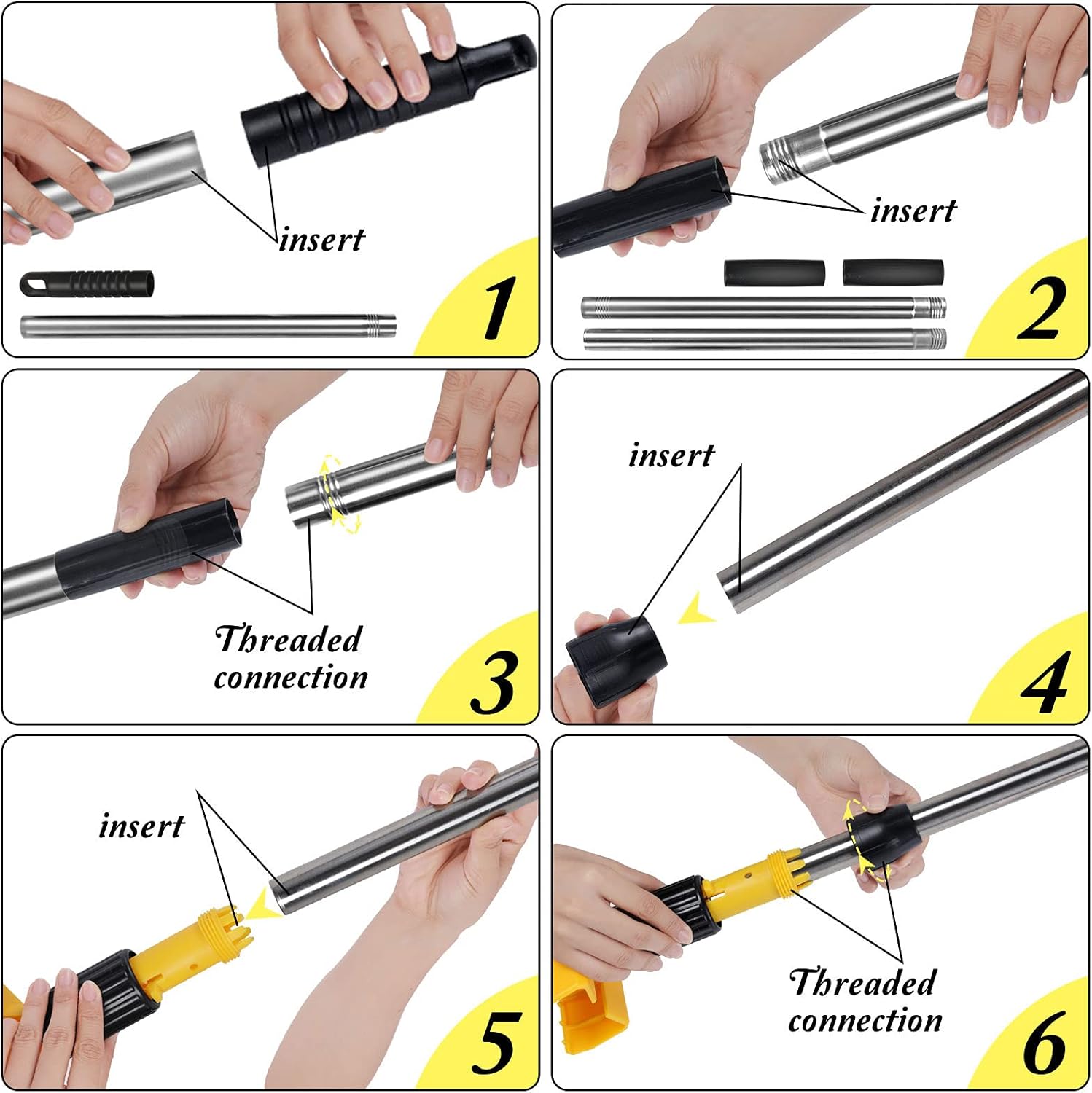 - Extendable Handle with Jaw Clamp:Our commercial mop has an expandable handle, which is made of high-quality stainless steel, strong and reliable, not easy to break, and can withstand all types of cleaning. The three-section rod design allows you to adjust it from 104 cm to 137 cm according to your cleaning needs. The jaw clamp can be controled the opening and closing by rotating the knob above the jaw clamp, which makes the removal and replacement of the mop head easy and efficient.