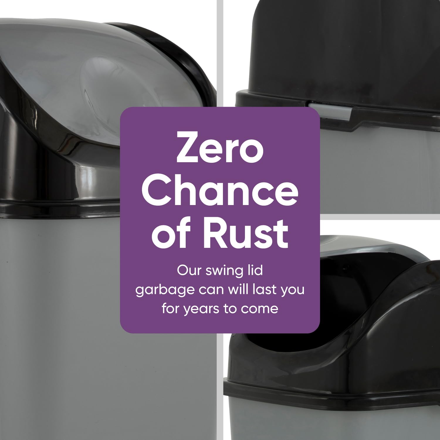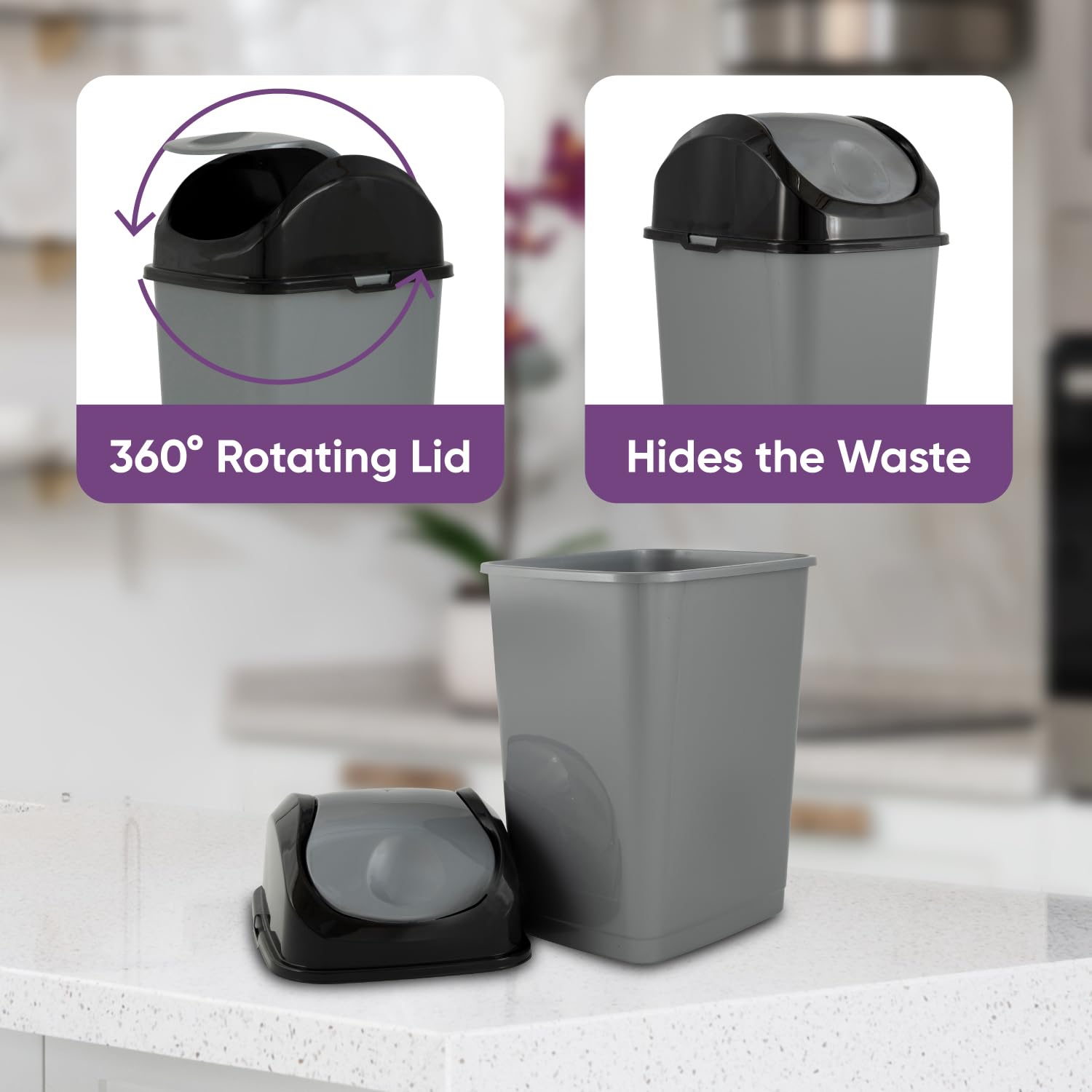 - SWING TOP LID β Keep your trash contained and out of sight with this easy swing lid garbage bin. It closes right away preventing any trash from getting out and makes it easier to clean while not having to use a regular opening lid. Itβs a useful addition to your office, bathroom, or kitchen.