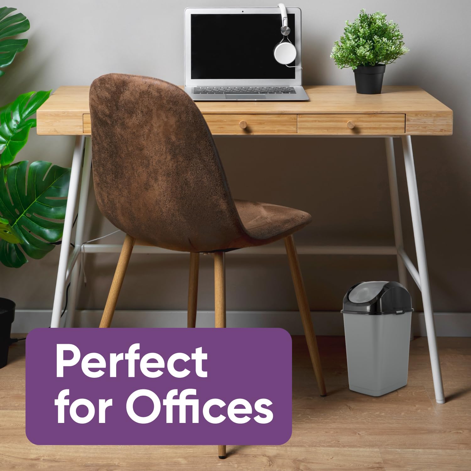 Superio Small 2.5 Gallon Plastic Trash Can with Swing Top Lid, Compact Slim Waste Bin for Under Desk, Office, Bedroom, Bathroom, Dorm Room, 10 Qt. Portable Garbage Can (Grey/Black, 2 Pack)