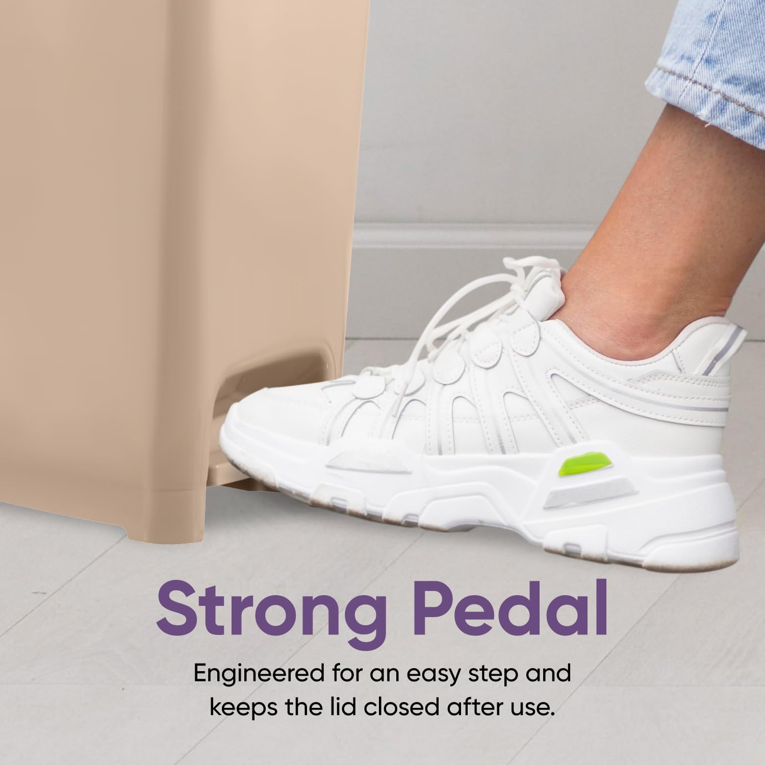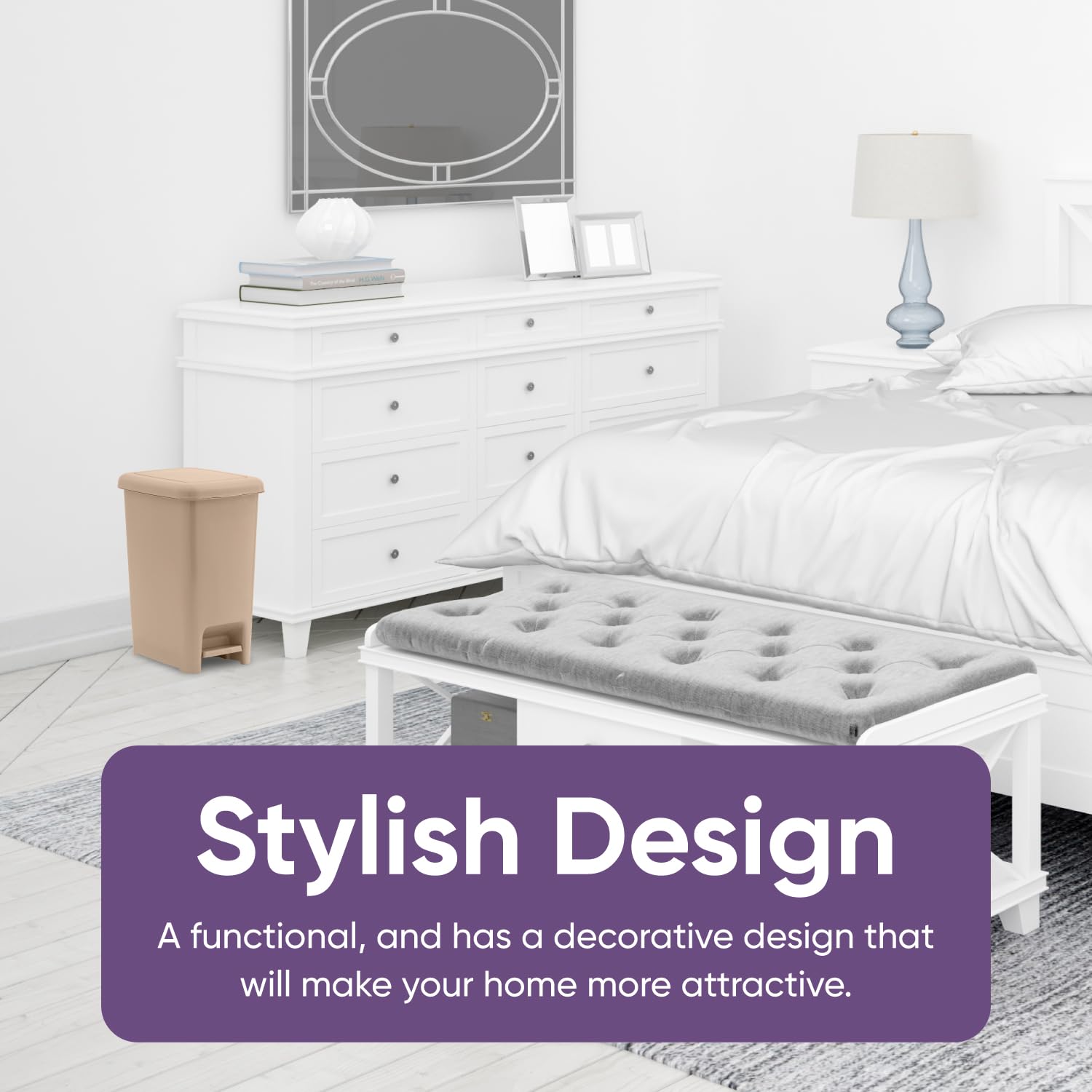 Superio Slim Step On Trash Can, Beige Waste Bin with Foot Pedal Lid 26 Liter, Kitchen, Under Desk, Office, Bedroom, Bathroom (2, 2.5 Gallon)