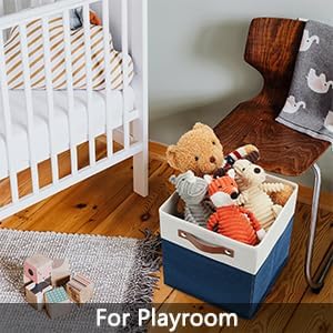 - 【Sturdy Leather Handles 】Sturdy thickened leather handles and metal iron buckles make them easy to carry even with a heavy load. Cardboard is inserted at the bottom and sides to provide support, so that these decorativecube storage bin to stand on, holding the shape well and can be used for a long time