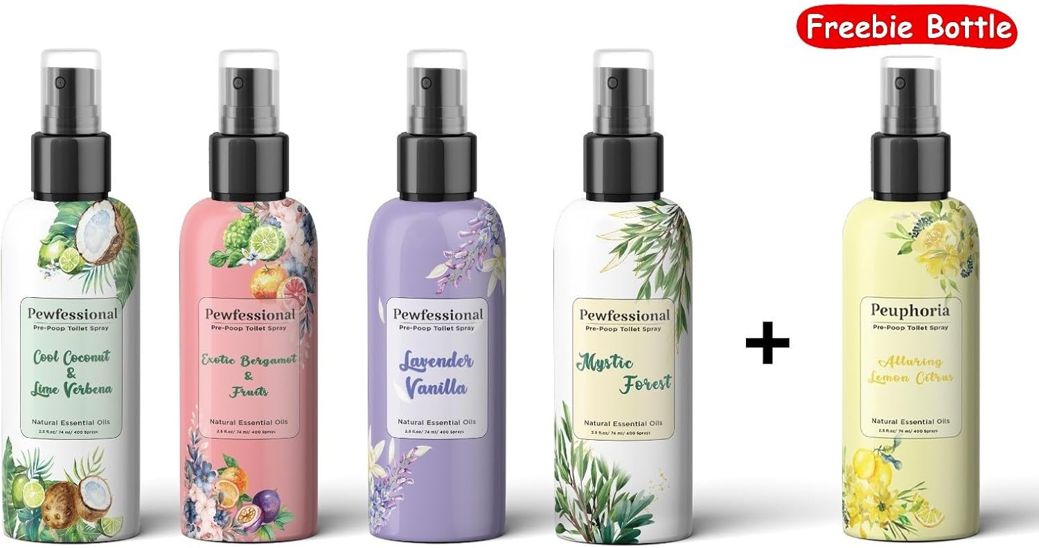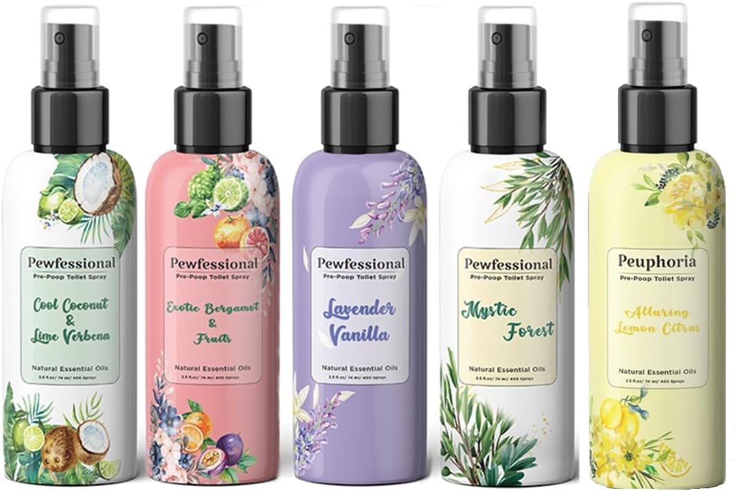 - JUST IMAGINE: With just five sprays, you can eliminate even the strongest toilet odors. Pewfessional Pre Poop Toilet Spray comes in beautifully artistically inspired bottles and features enchanting natural scents