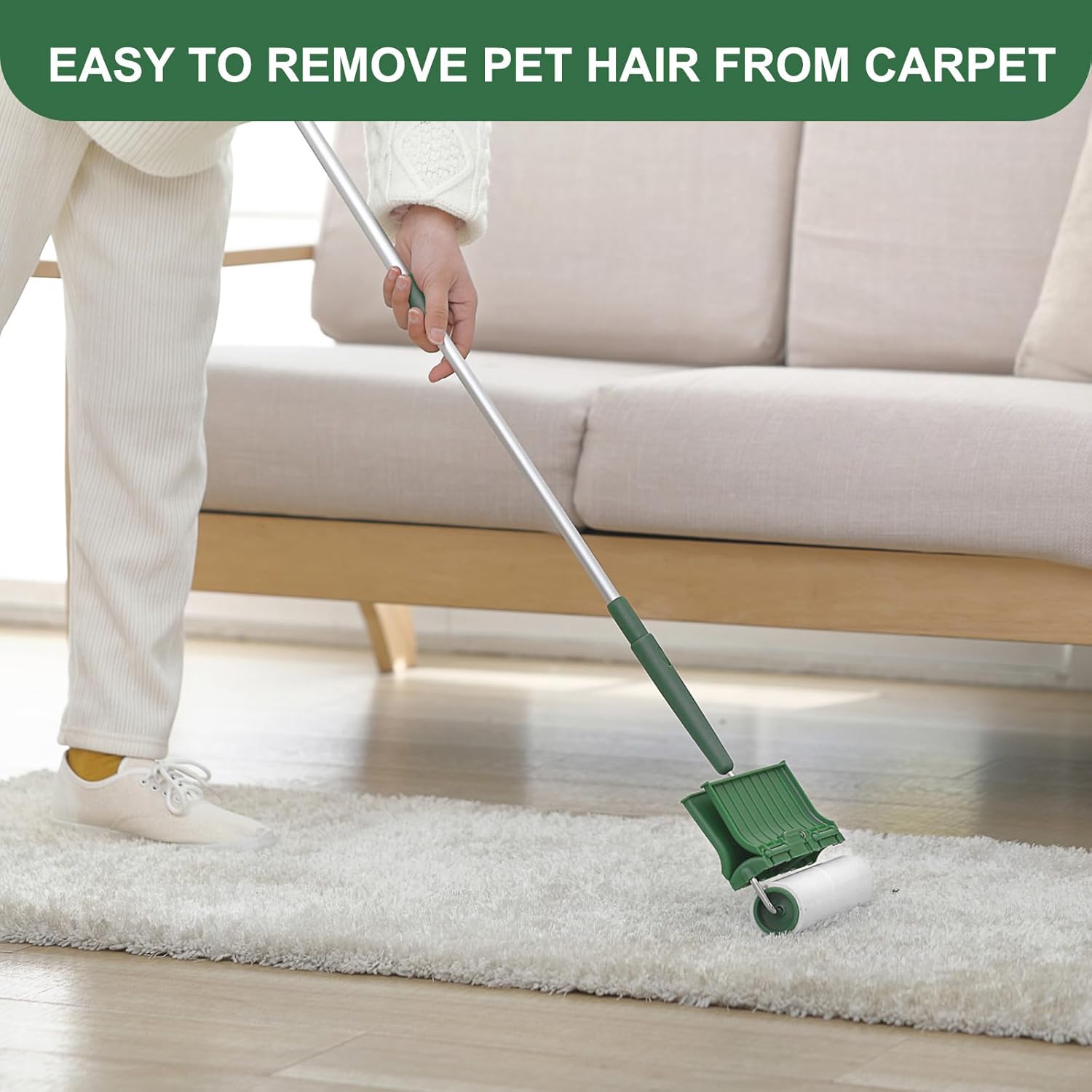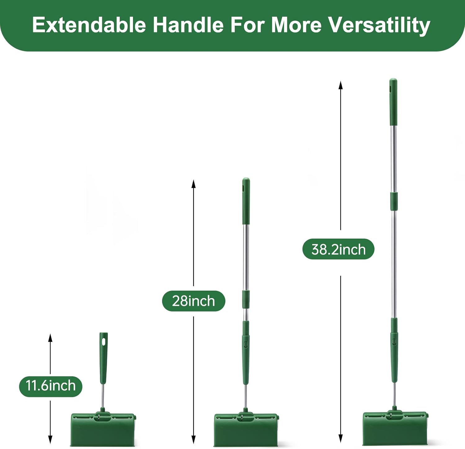- FEDICELLY FLOOR LINT ROLLER WITH EXTENDABLE HANDLE: Giant lint roller comes with extendable handle from 18.3-28.7 inch long for far reach(Separate handle, rollers not included). This retractable long handle can be adjusted to any suitable sizes as you need. You can use sticky floor roller standing up to clean hair from floor carpets, or you can easily reach under the sofa or bed to clean any dog & cat hair, dust, dirt.